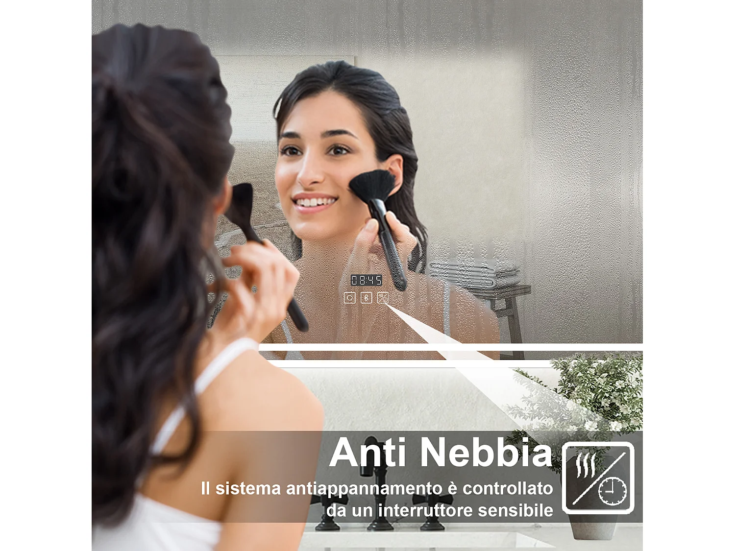 Specchio Luminoso da Bagno 120x70cm con Bluetooth, 3 Luci LED, Regolabile, Lente d'Ingrandimento, Orologio, Anti-Appannamento e Memoria