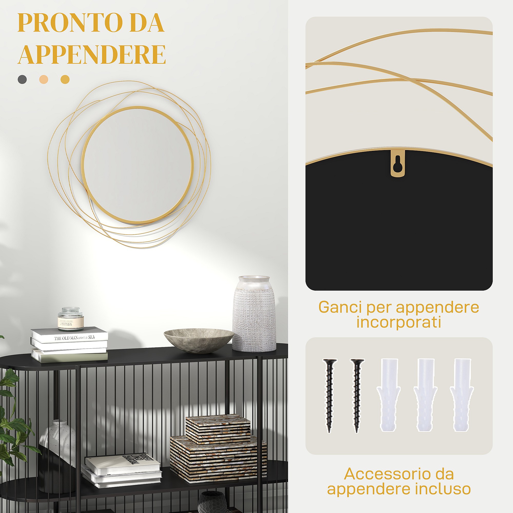 Specchio moderno rotondo a muro con ganci in metallo e vetro oro