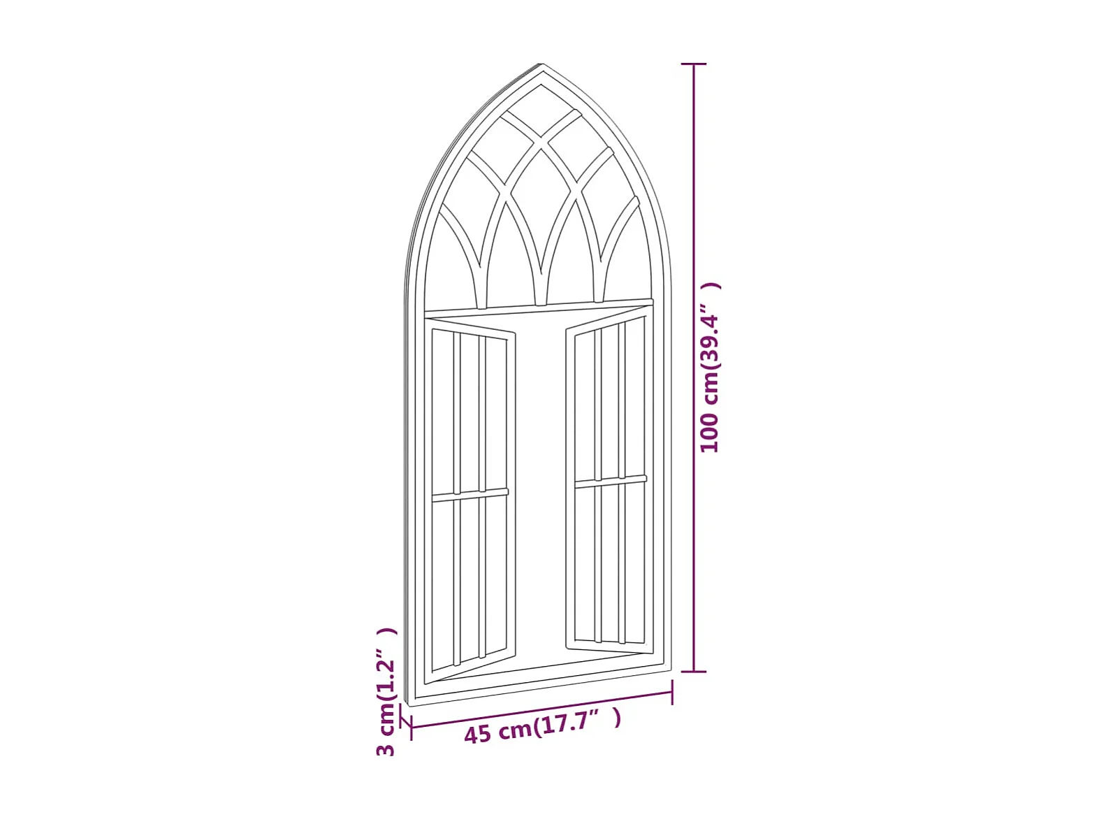 Specchio da Giardino Nero 100x45 cm in Ferro per Uso Esterno