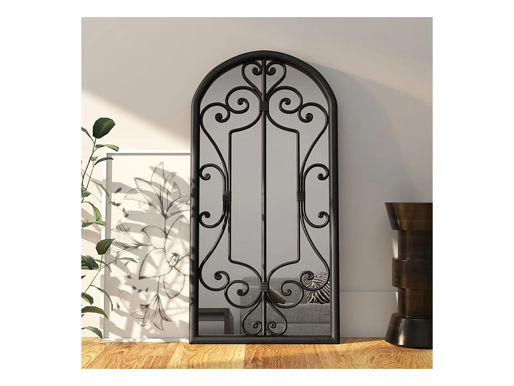 Specchio da Giardino Nero 70x30 cm in Ferro per Uso Esterno