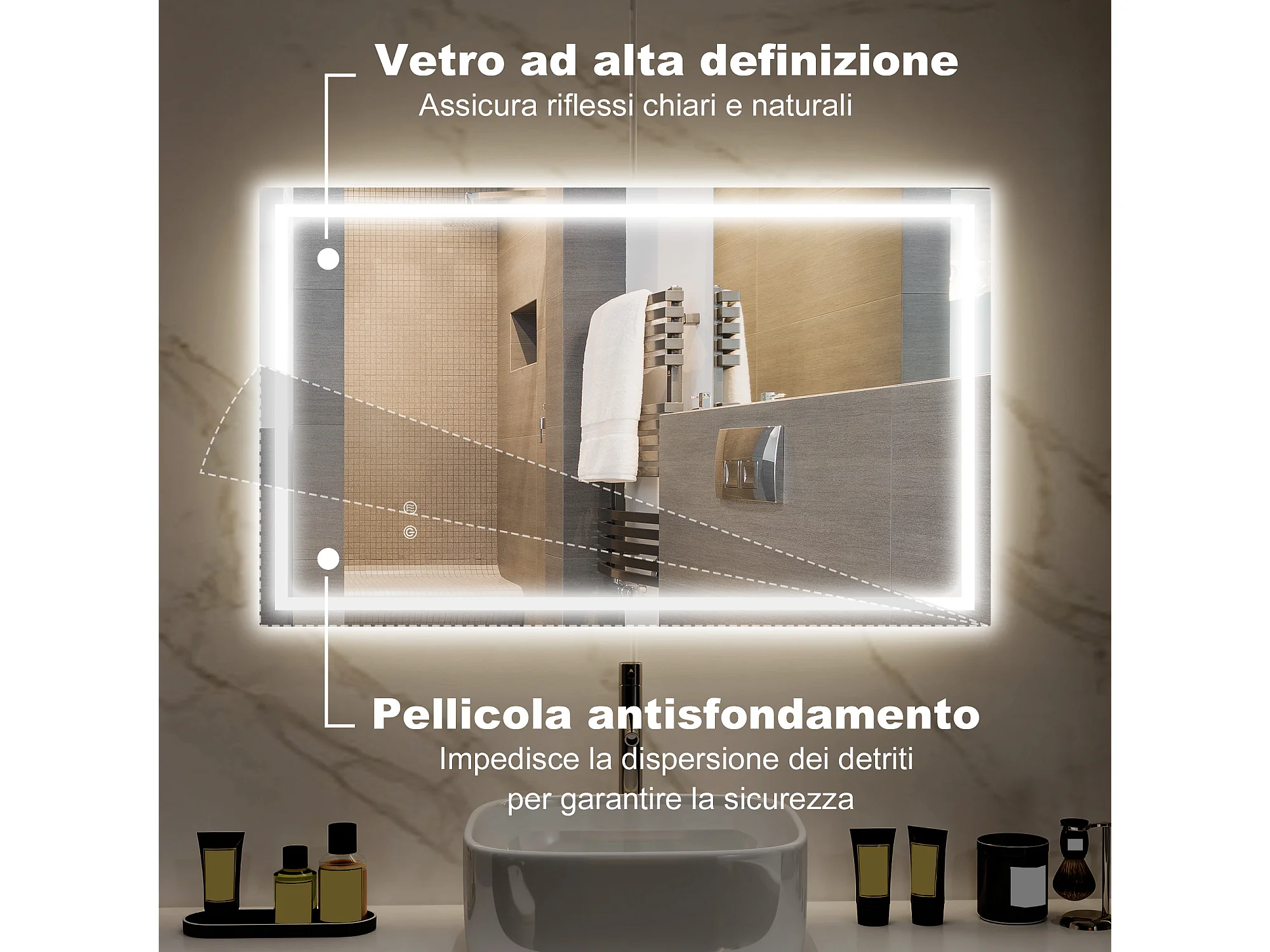 Specchio per bagno con luci led regolabili a 3 colori 100x3x60 cm