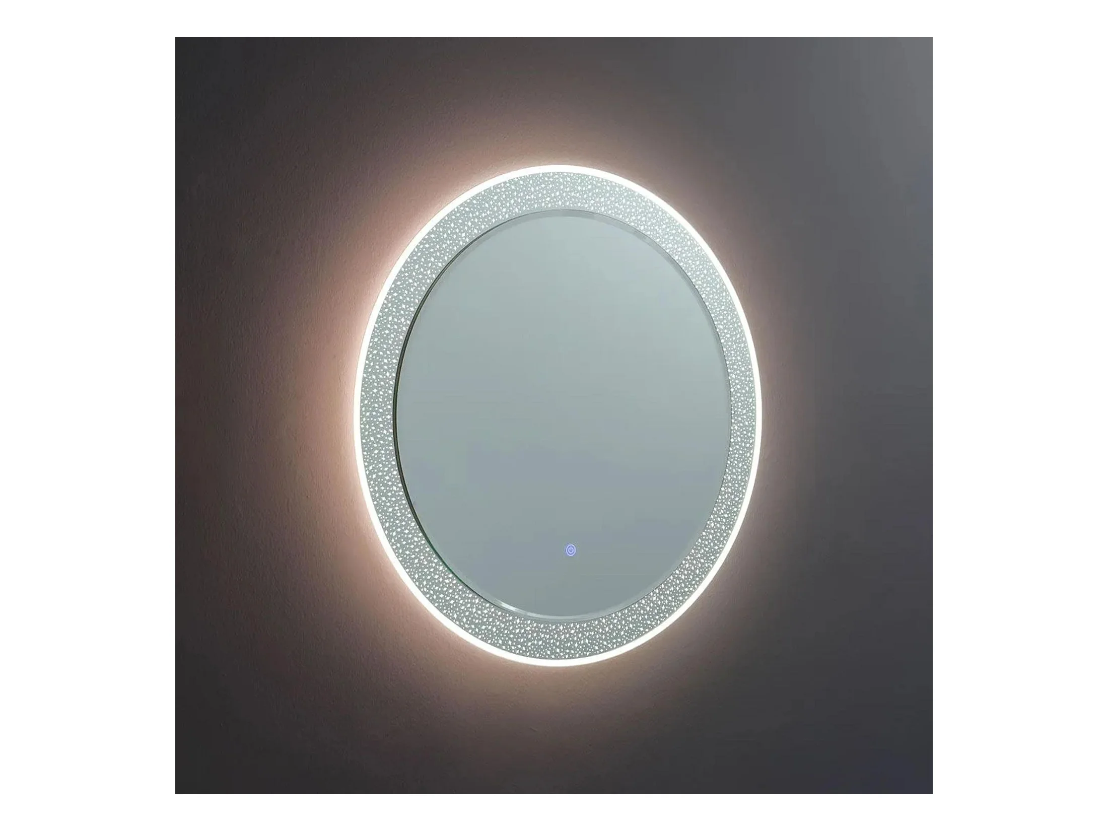 Specchio rotondo con cornice decorata a led "Illusione" in alluminio cm 80x80
