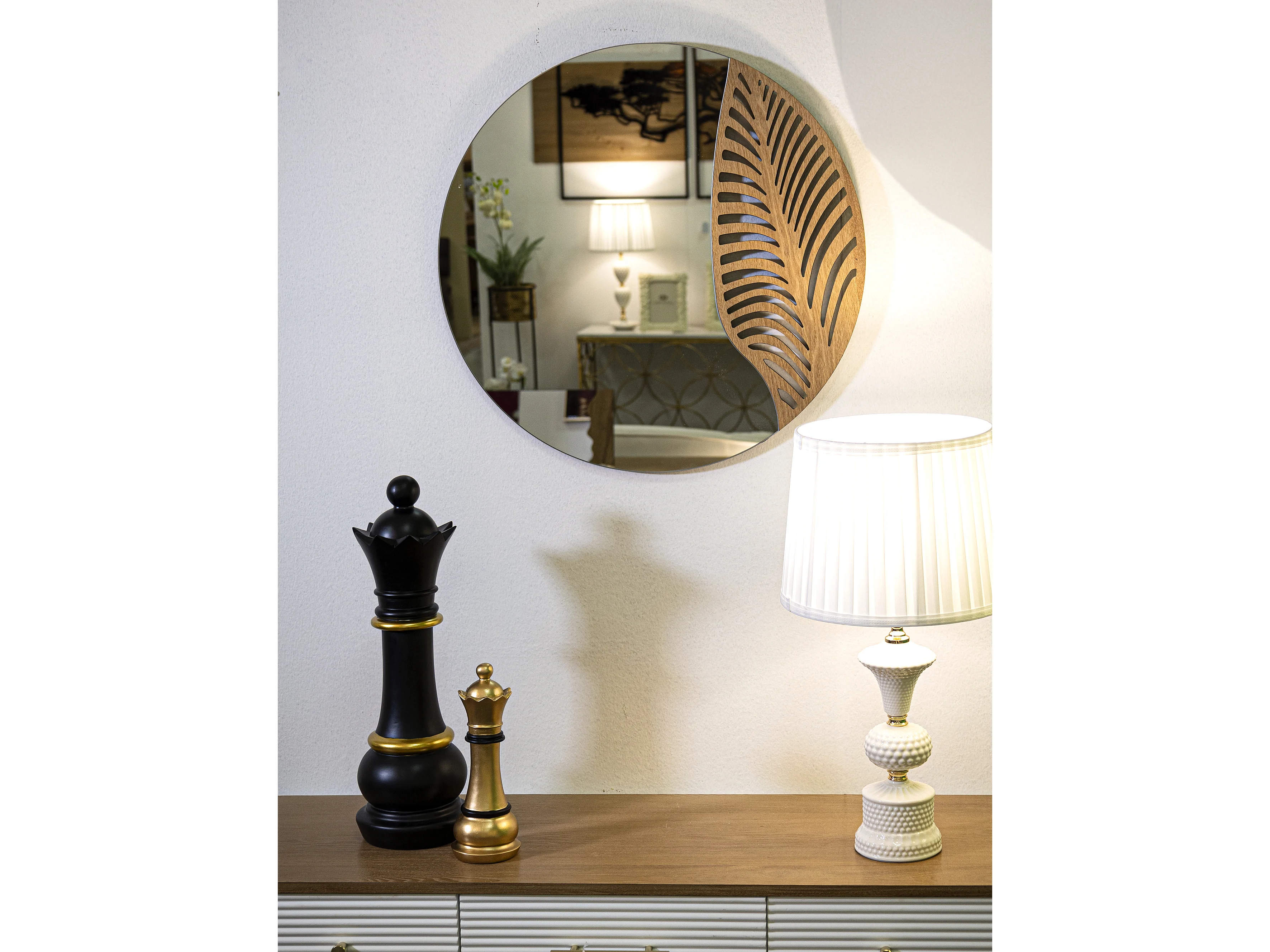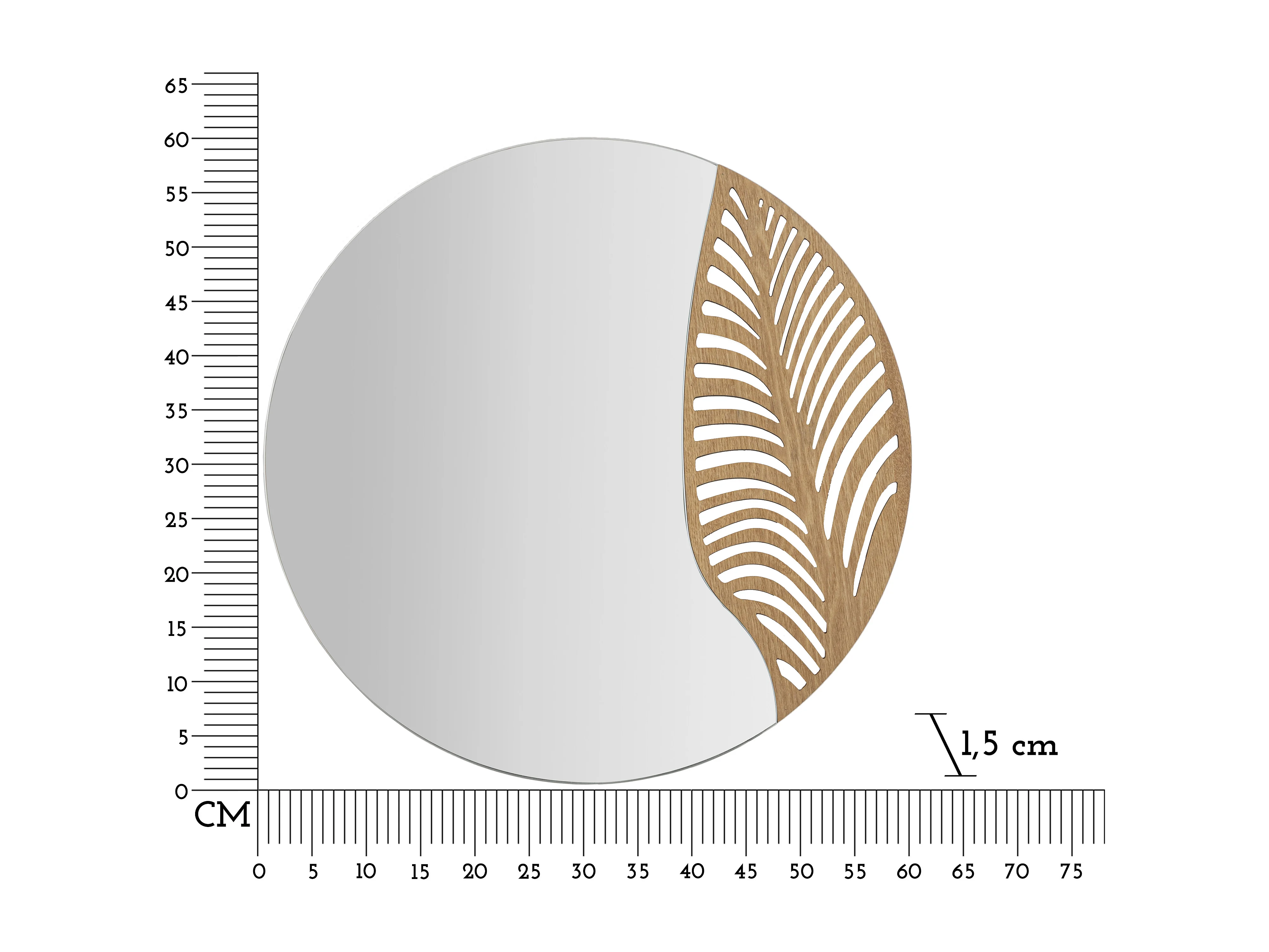 Specchio rotondo da parete in legno marrone con foglia Ø cm 60x1,5
