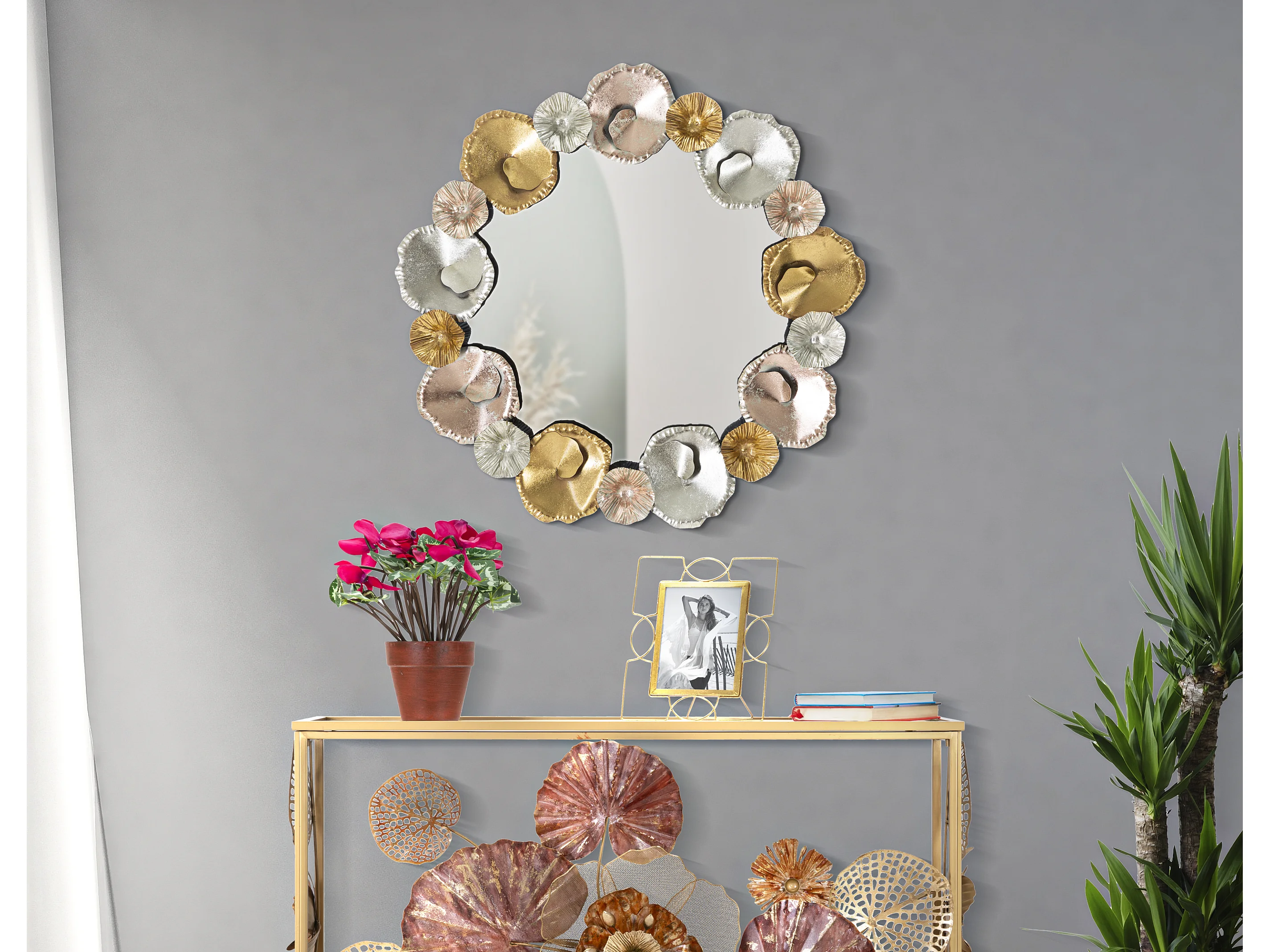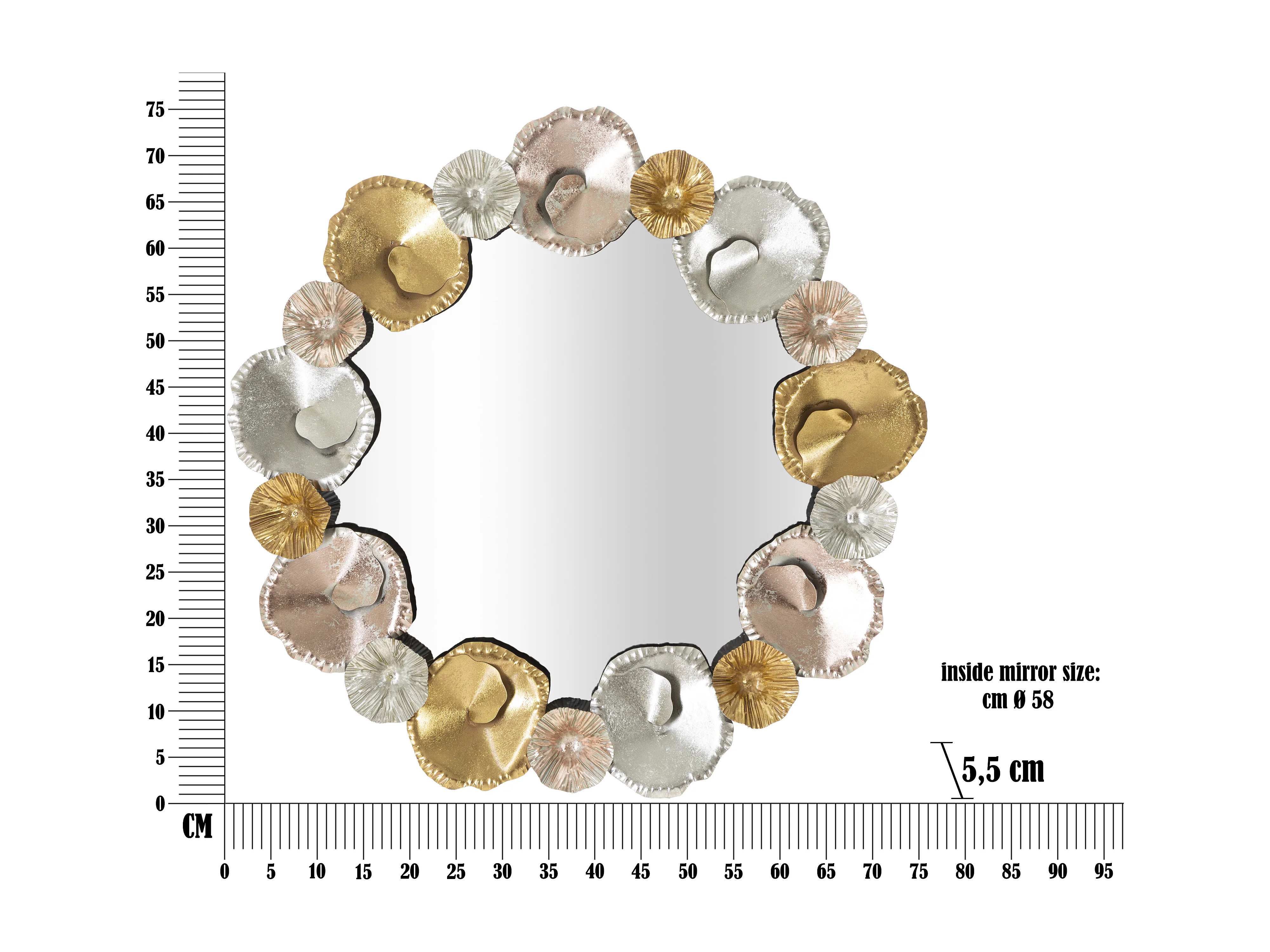 Specchio da parete con fiori in metallo multicolore cm 74,9x7,6x72,4