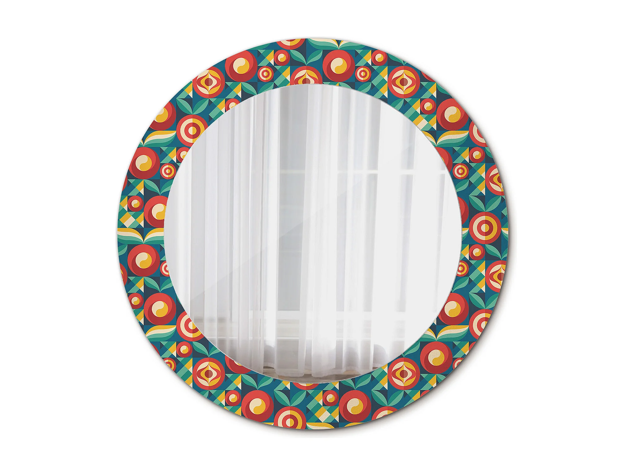 Specchio rotondo decorativo - Frutti e foglie geometrici - 60 cm
