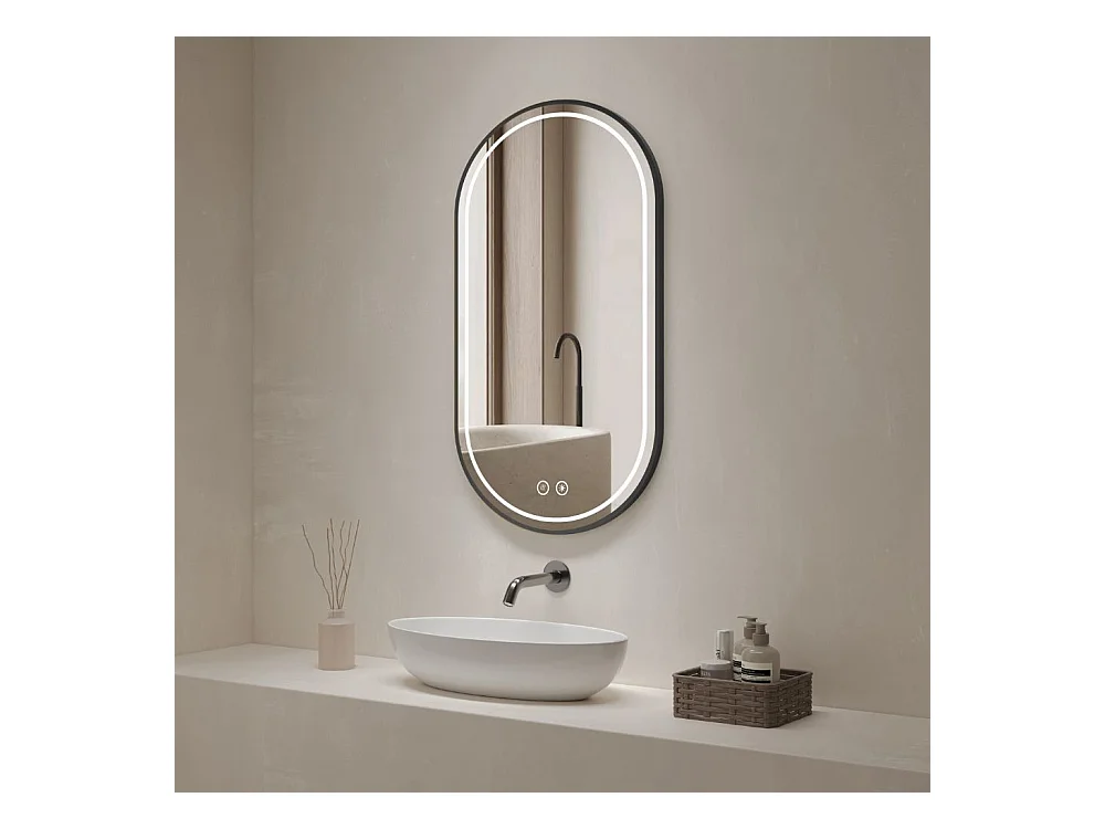 Specchio smart ovale anti-appannamento YJ-2004BL 90x60 con cornice nera in acciaio Inox satinato