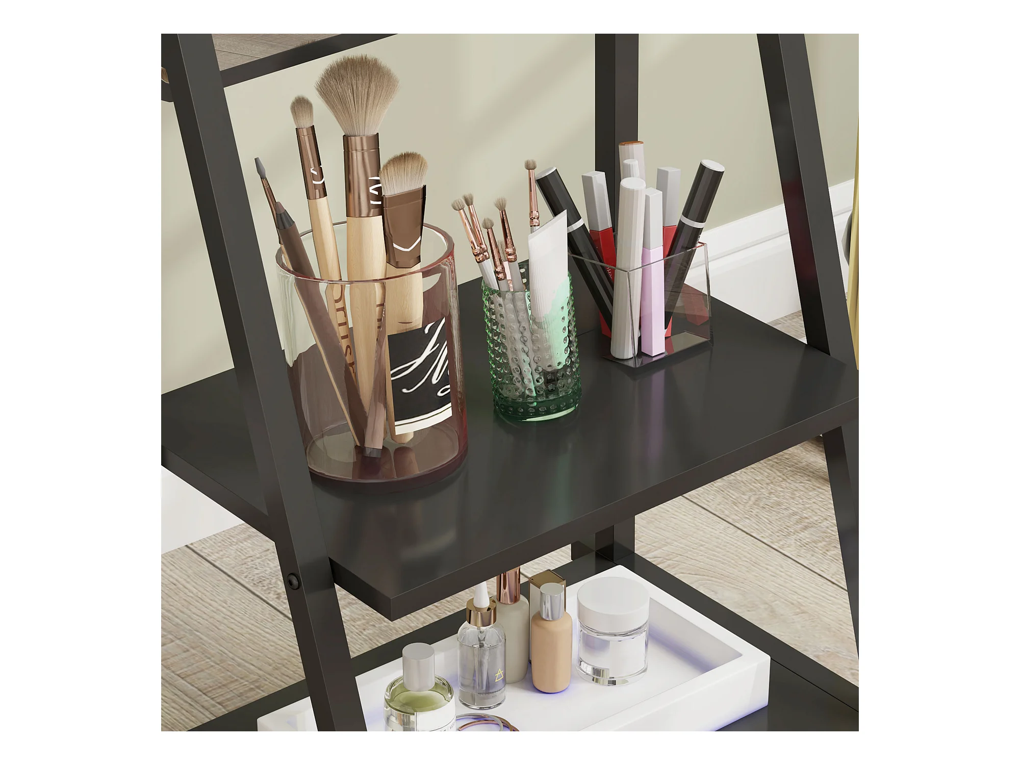 Specchio da appoggio con ripiani, struttura in acciaio, nero, ruote frenabili (42x37x155cm)