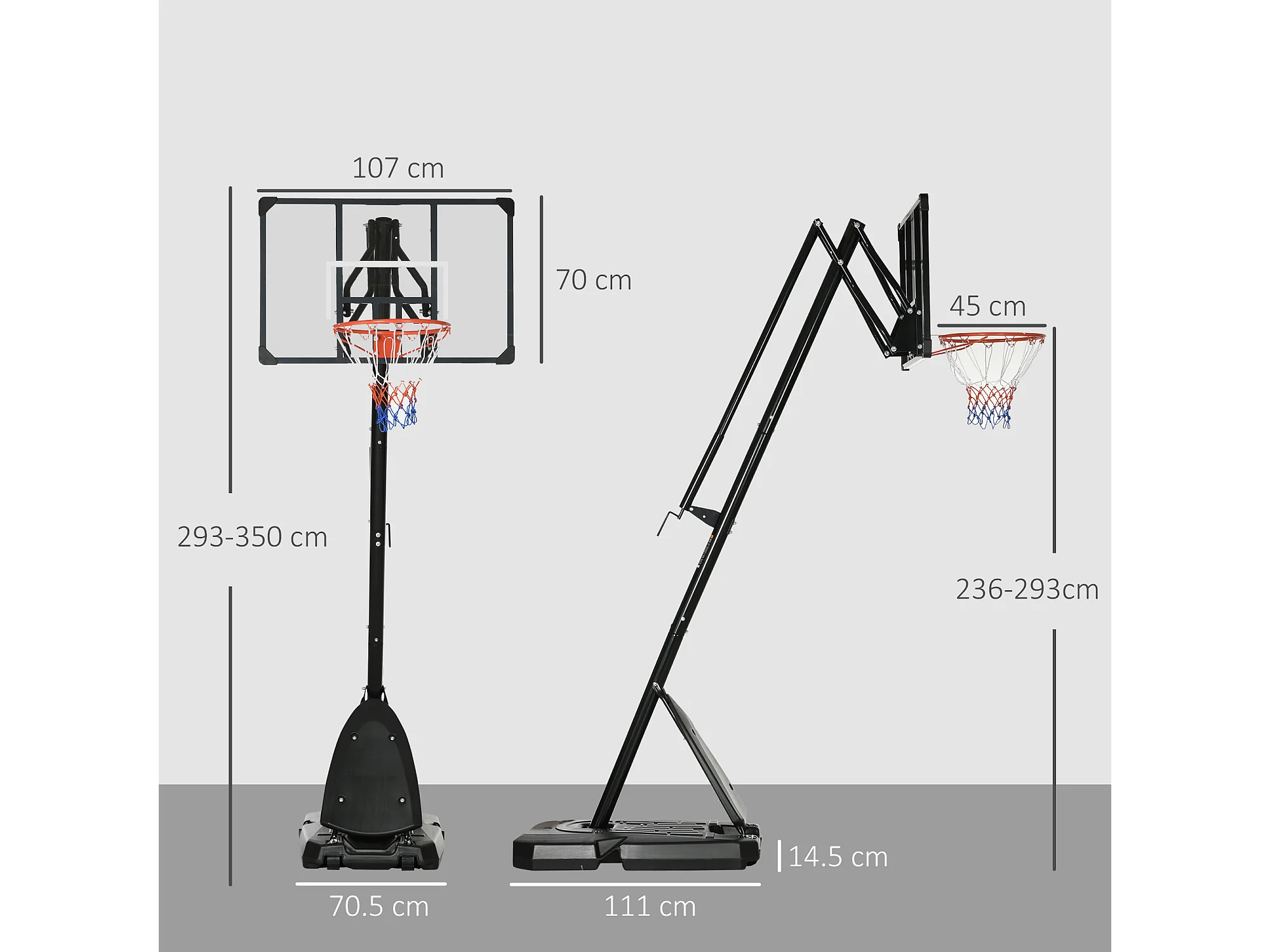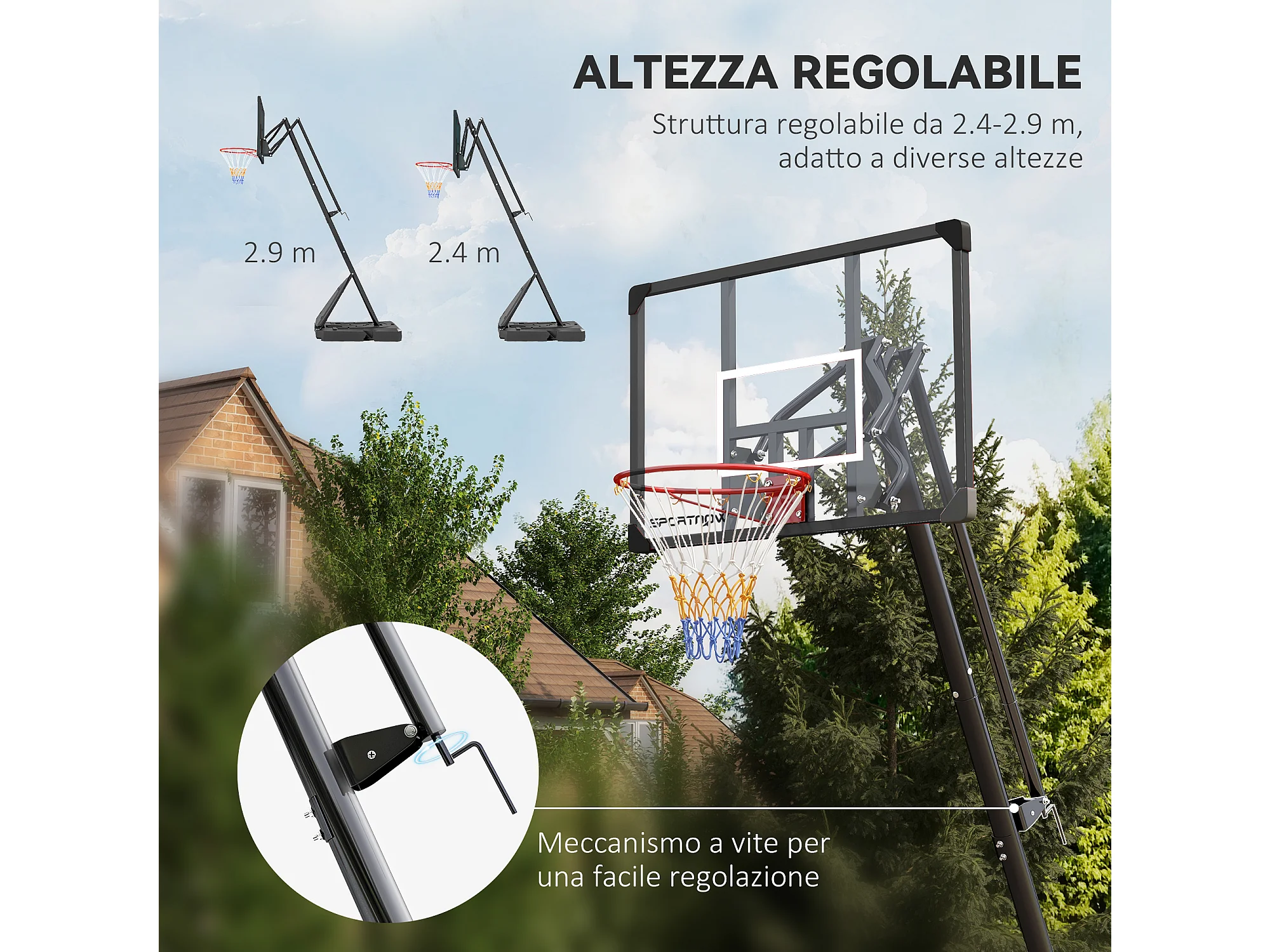 Canestro Basket in acciaio regolabile in Altezza e con ruote