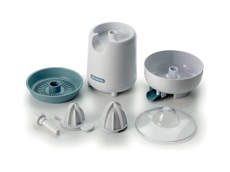 Spremiagrumi 40W, 2 coni di spremitura, coperchio protezione, beccuccio antigoccia - Bianco & Celeste