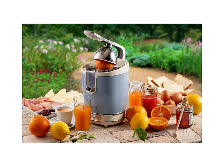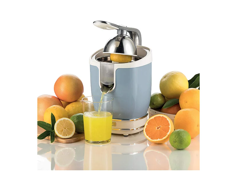 Spremiagrumi Elettrico con Leva - Motore Silenzioso - 85 Watt - Design Vintage - Celeste