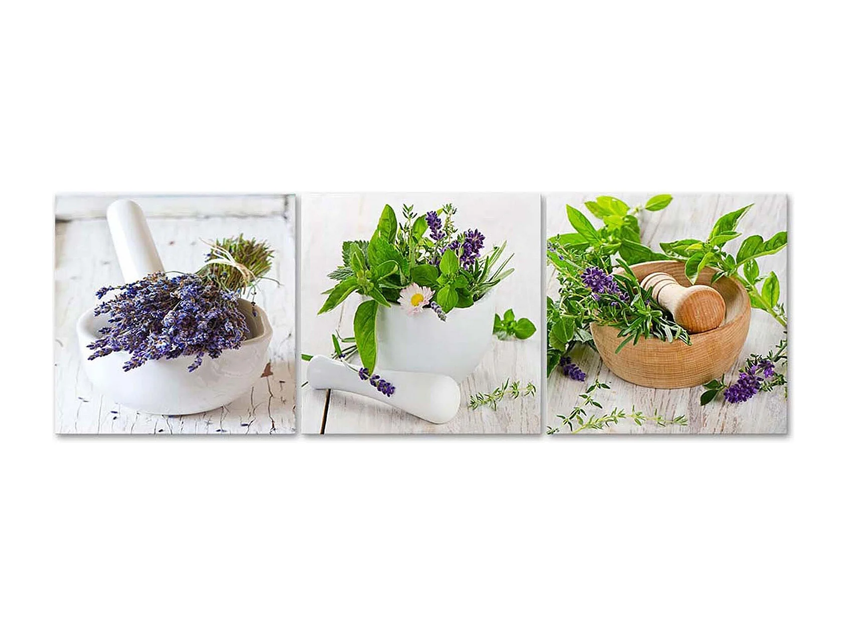 Stampa su tela 3 parti, Le erbe in cucina - 120x40