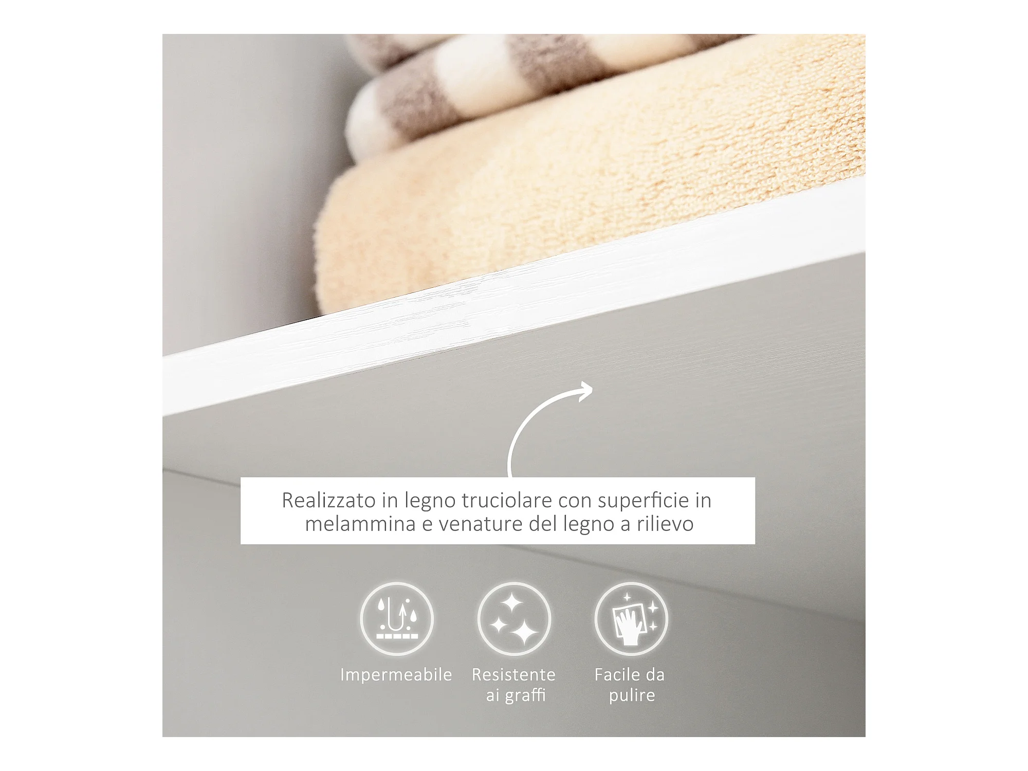 Armadio guardaroba a rotelle con 2 barre e 3 ripiani bianco