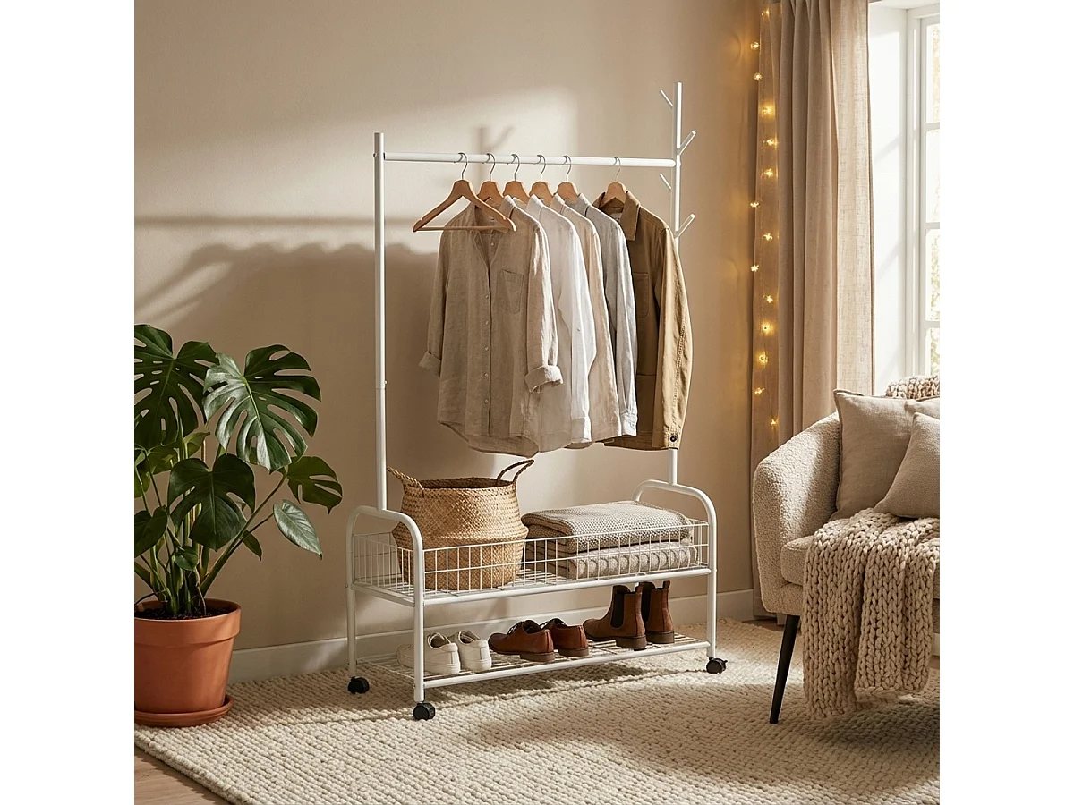 Stand carrello appendiabiti con ruote attaccapanni in metallo Lamy Plus - Bianco