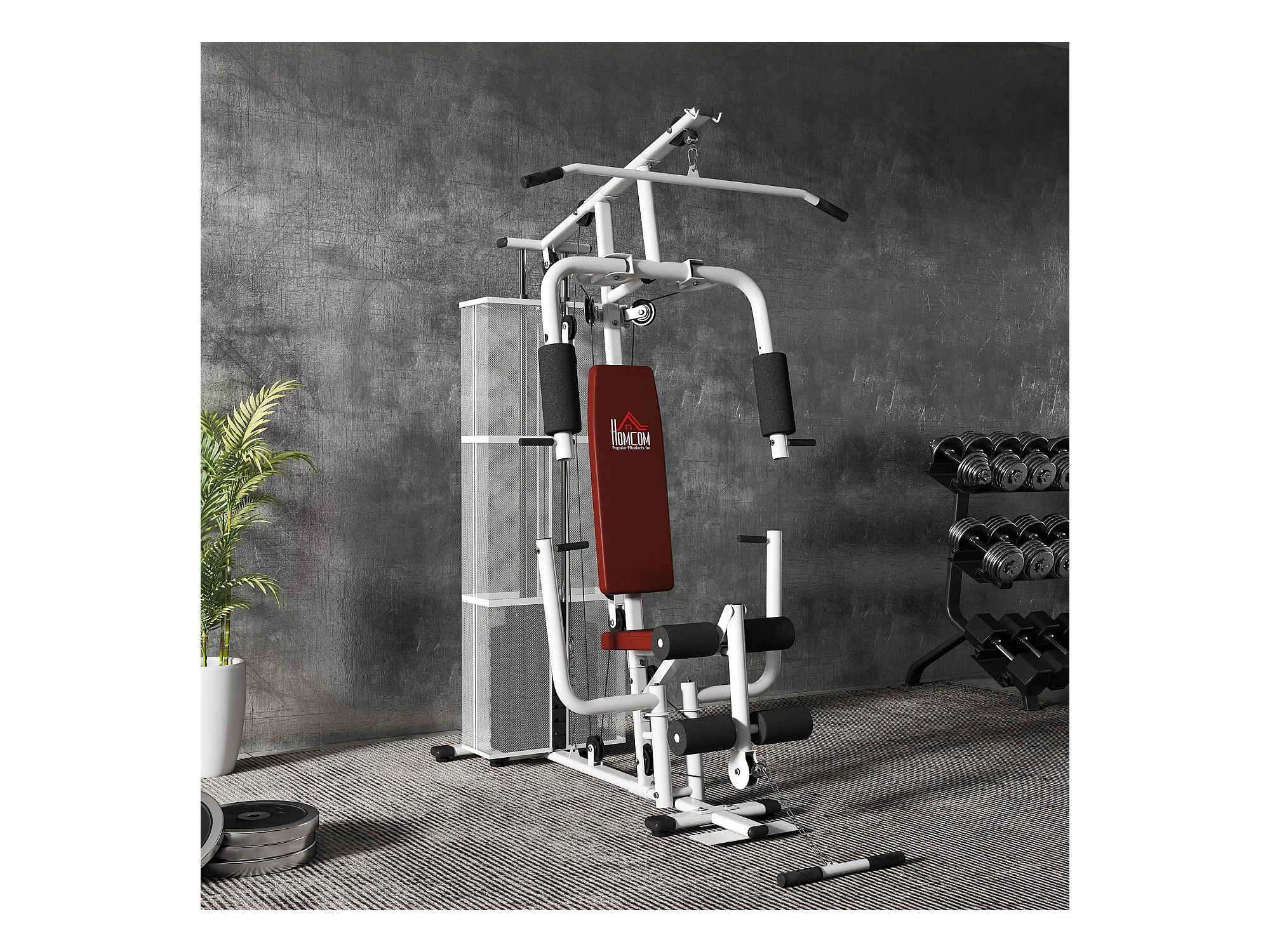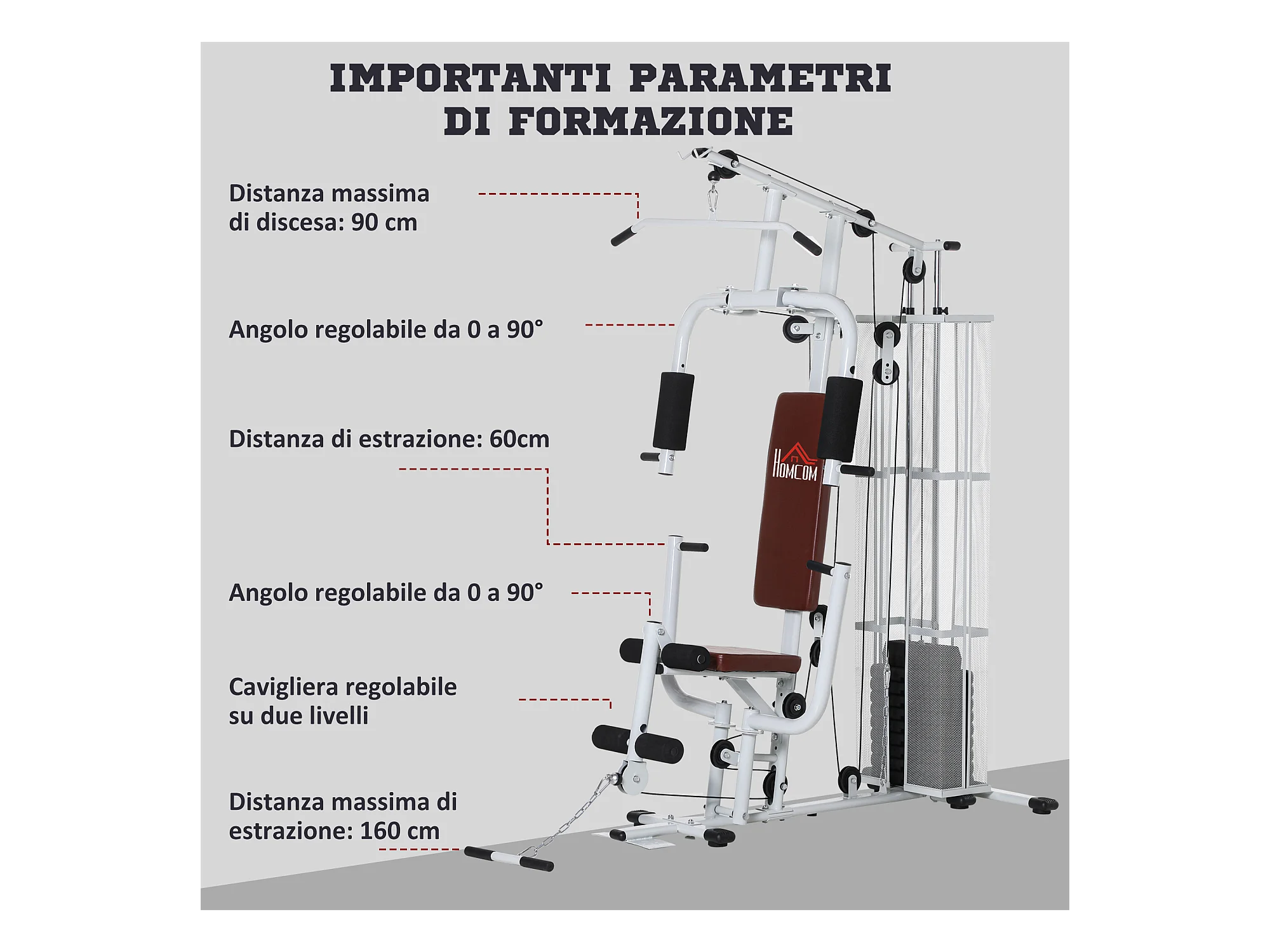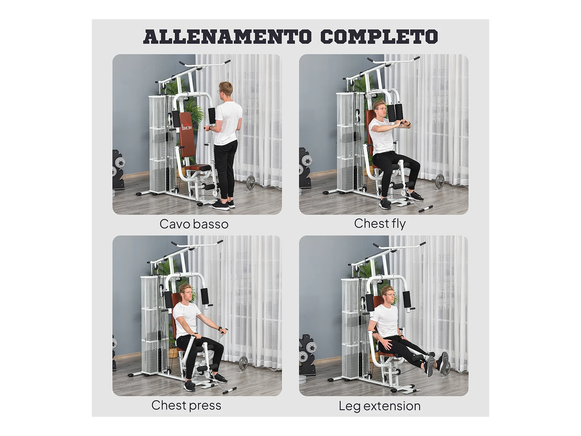Stazione fitness multifunzione con 4 imbottiture in acciaio e pu bianco