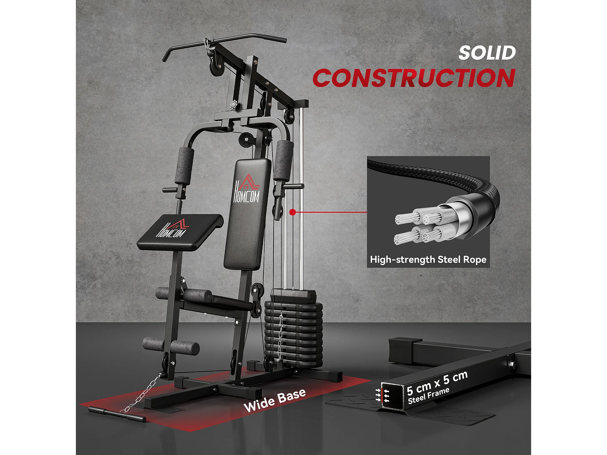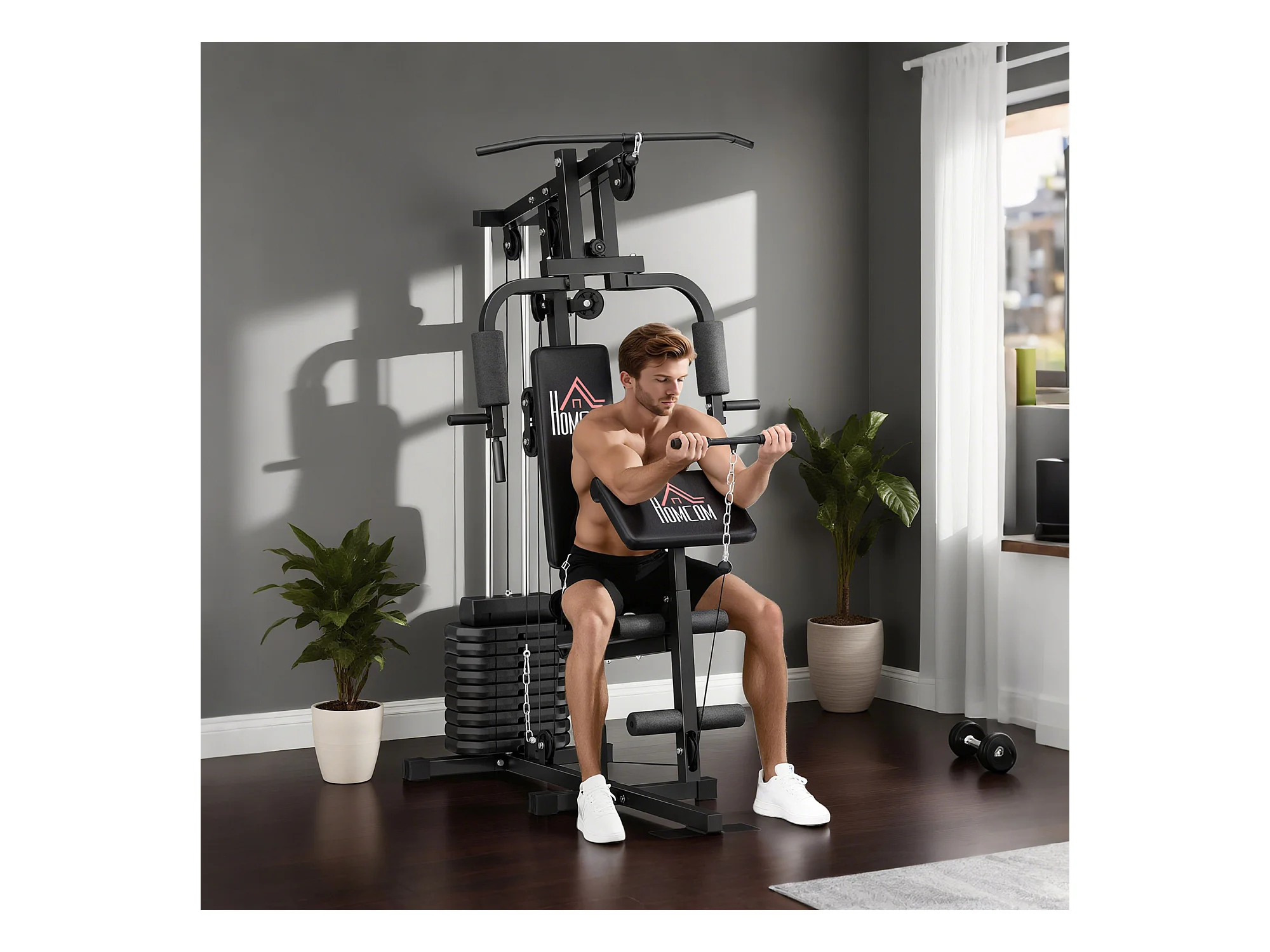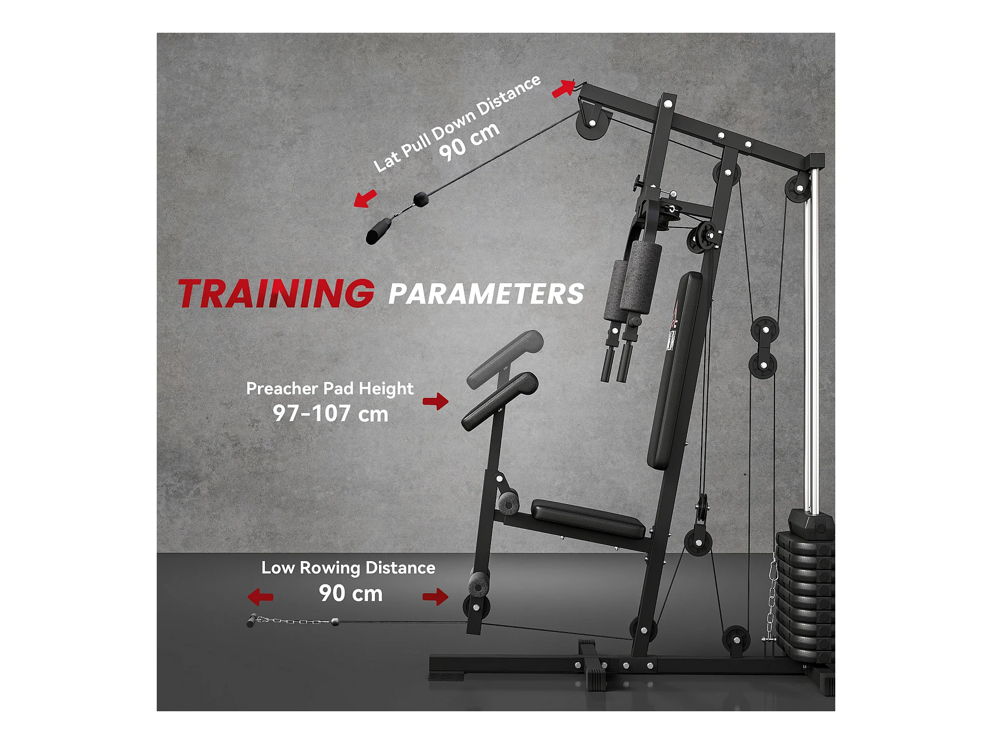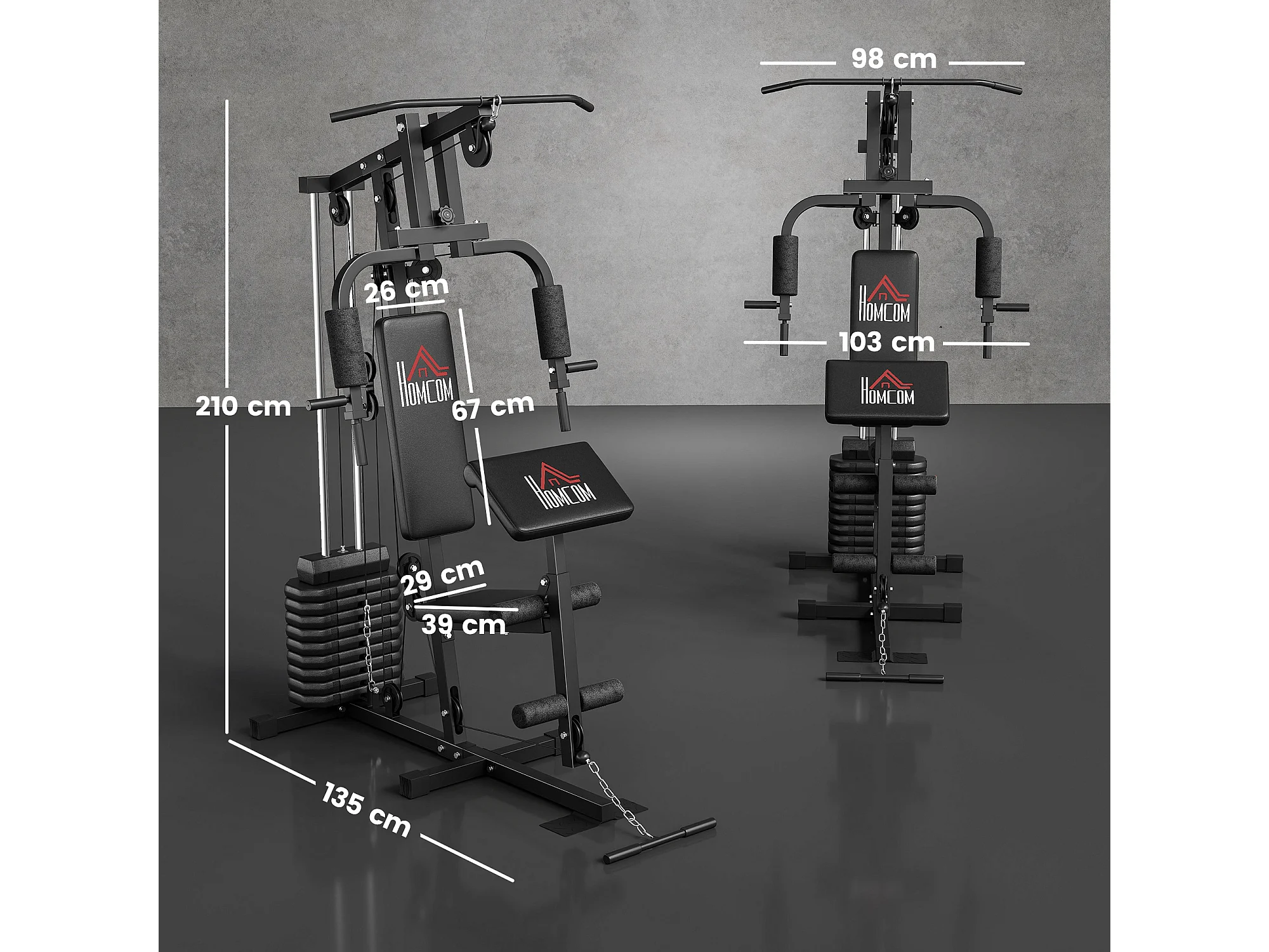 Stazione fitness con pesi da 45kg per allenamento a casa 135x103x200cm