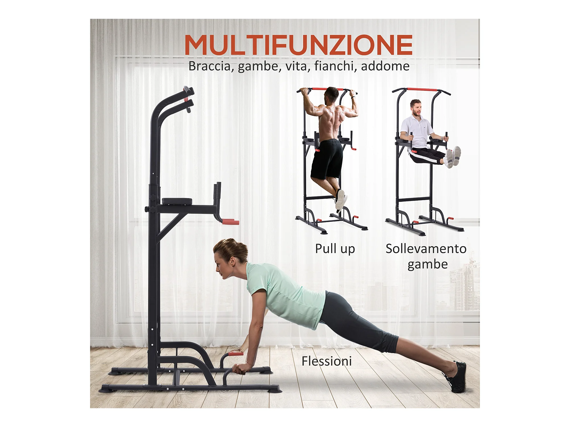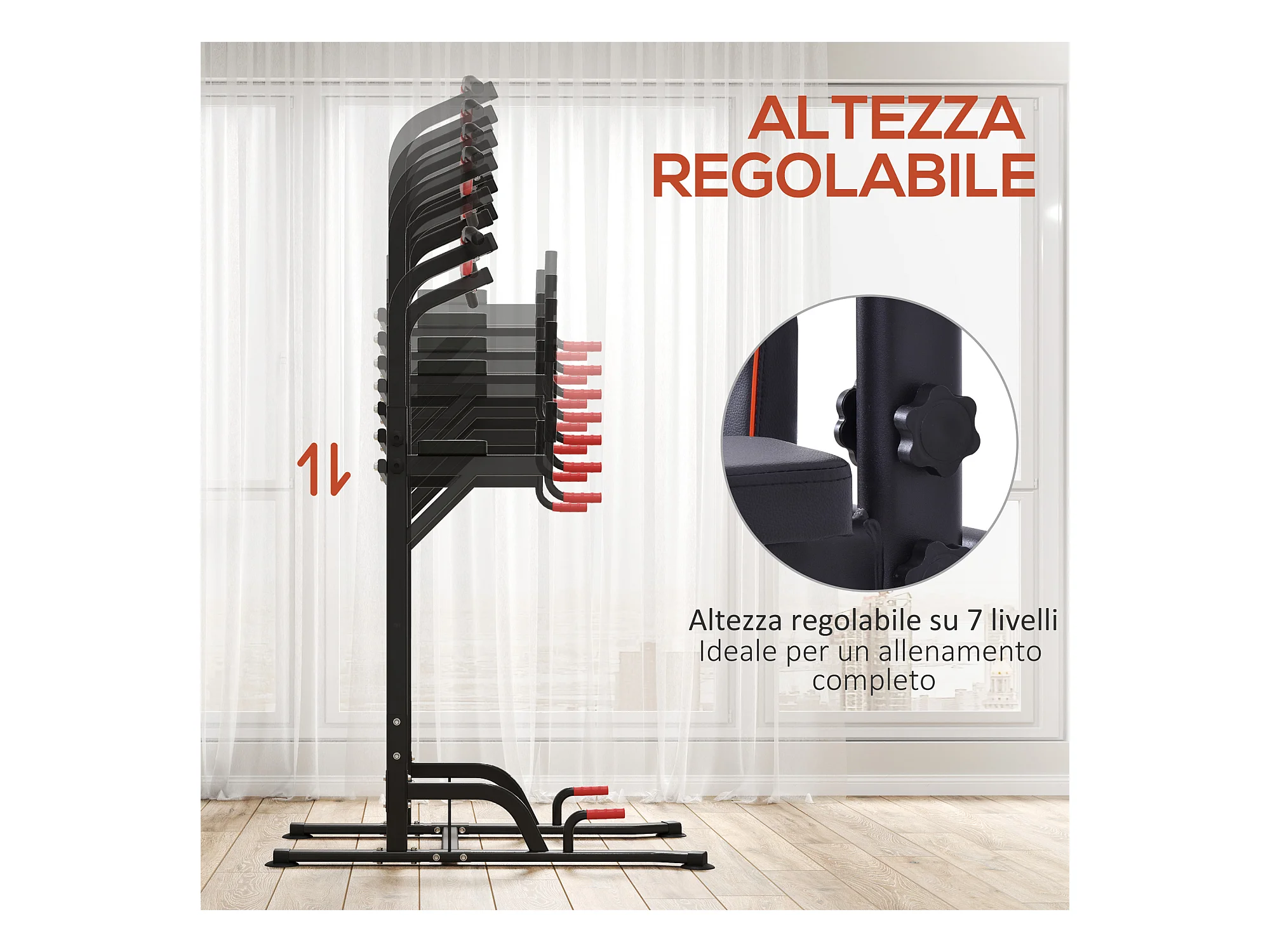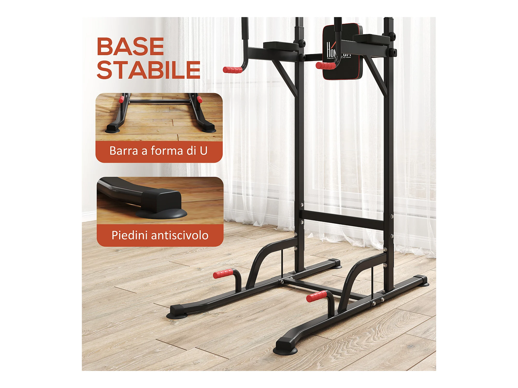 Power tower stazione fitness multifunzione con altezza regolabile nero rosso
