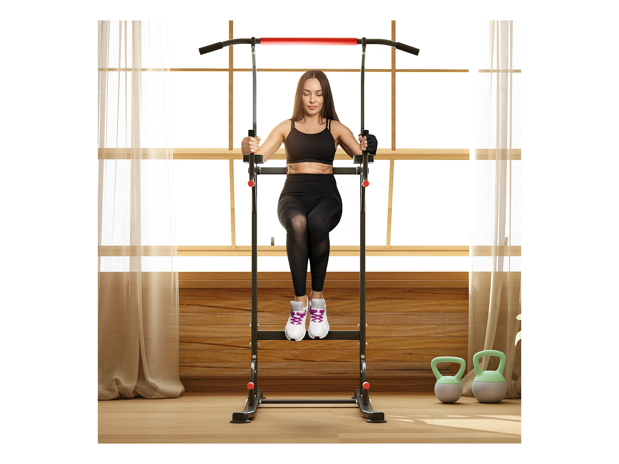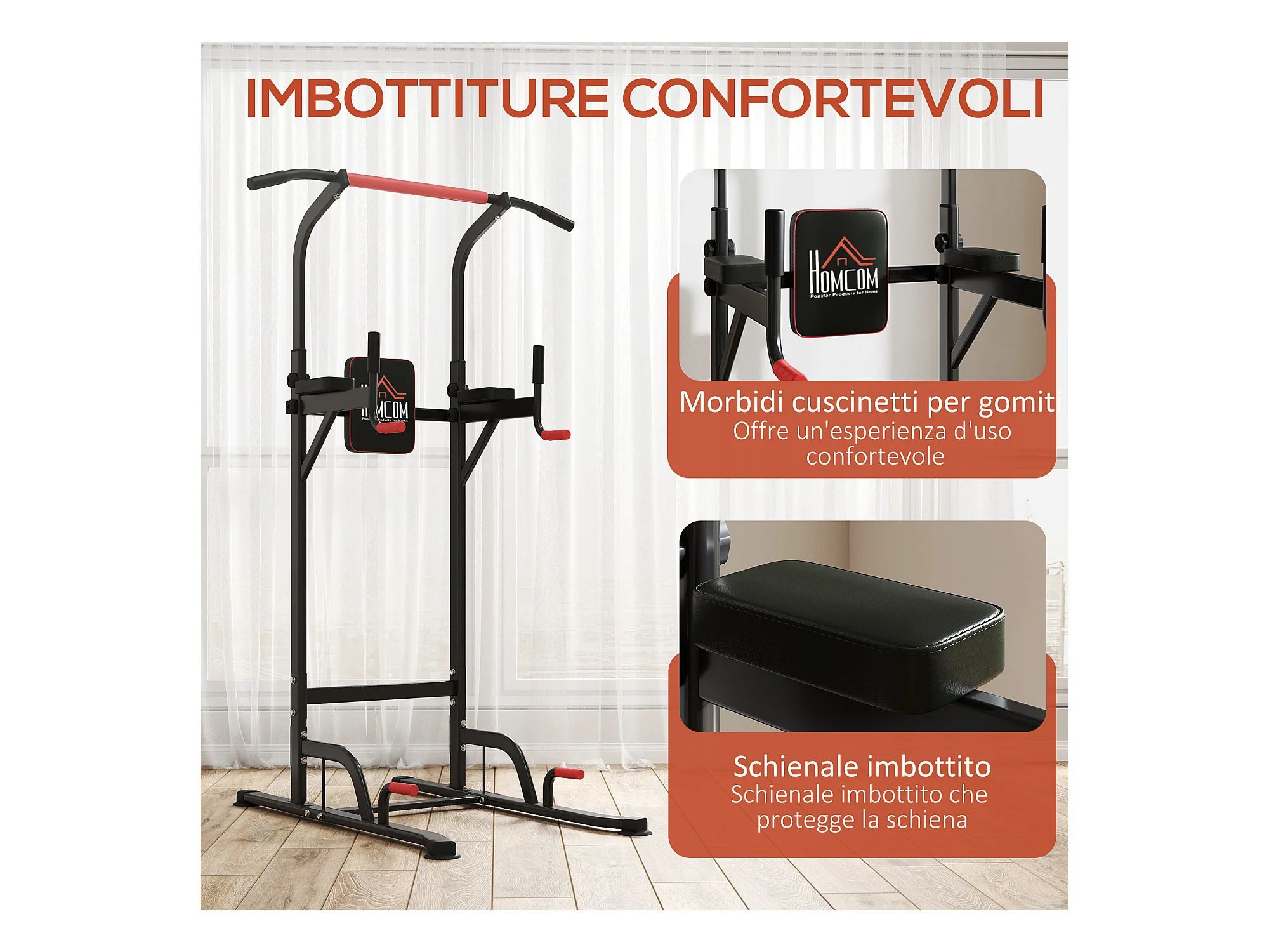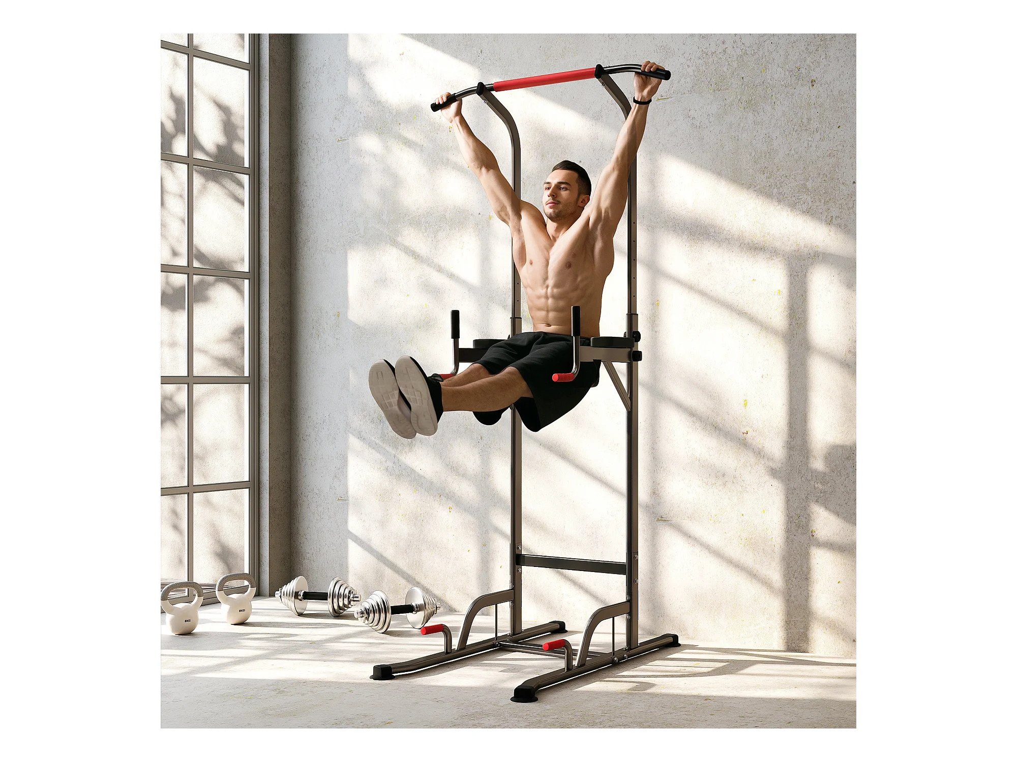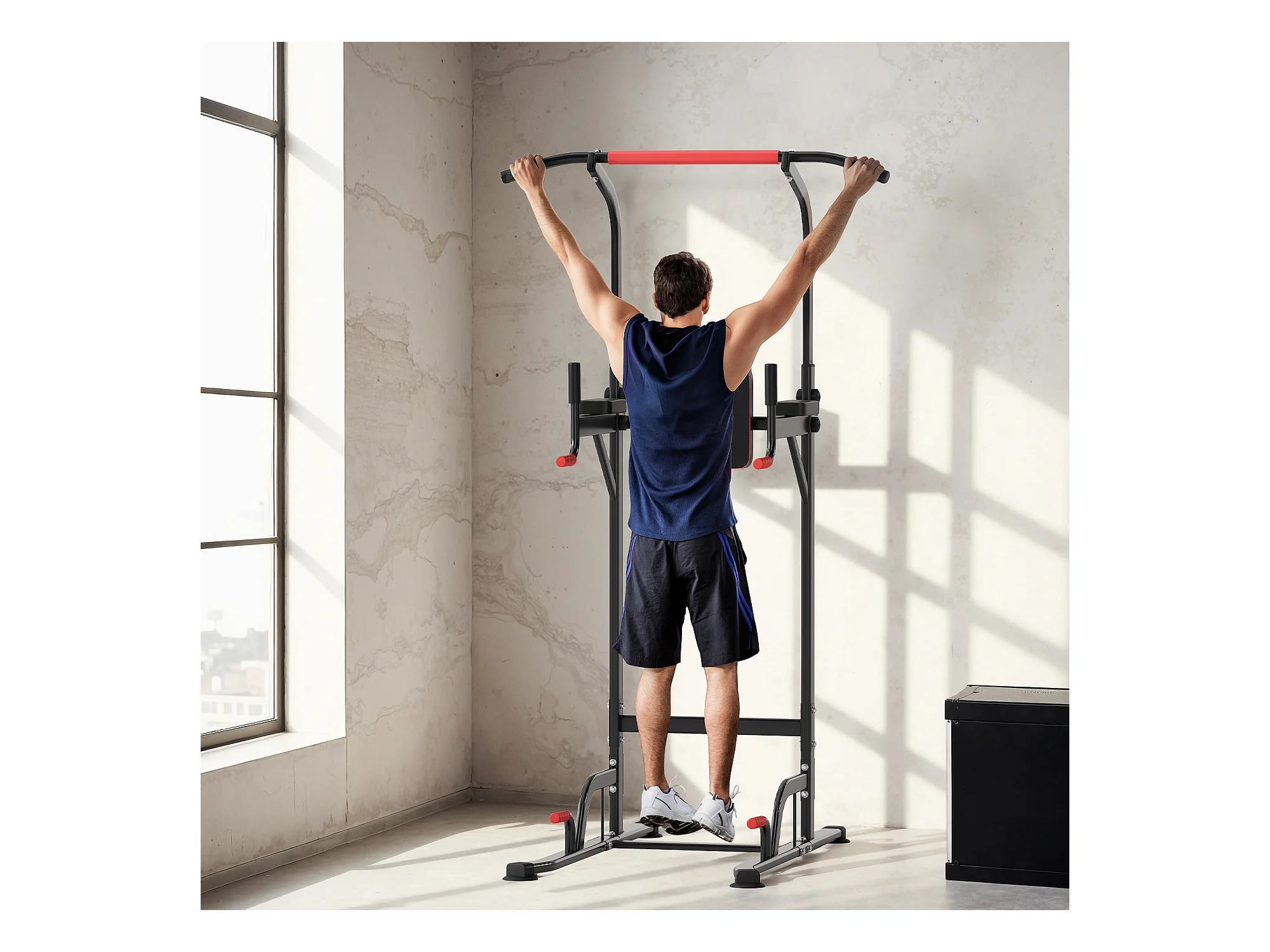 Power tower stazione fitness multifunzione con altezza regolabile nero rosso