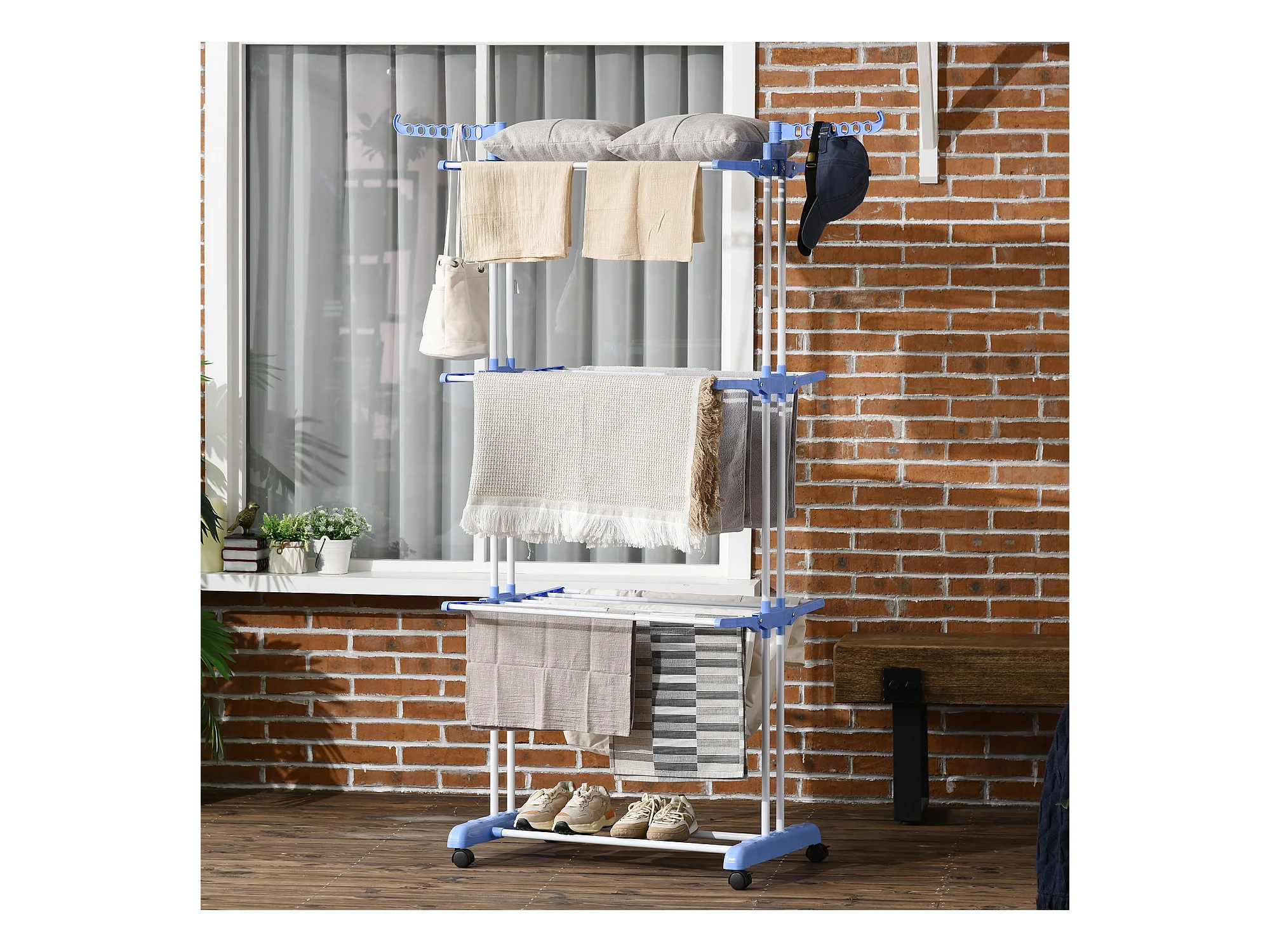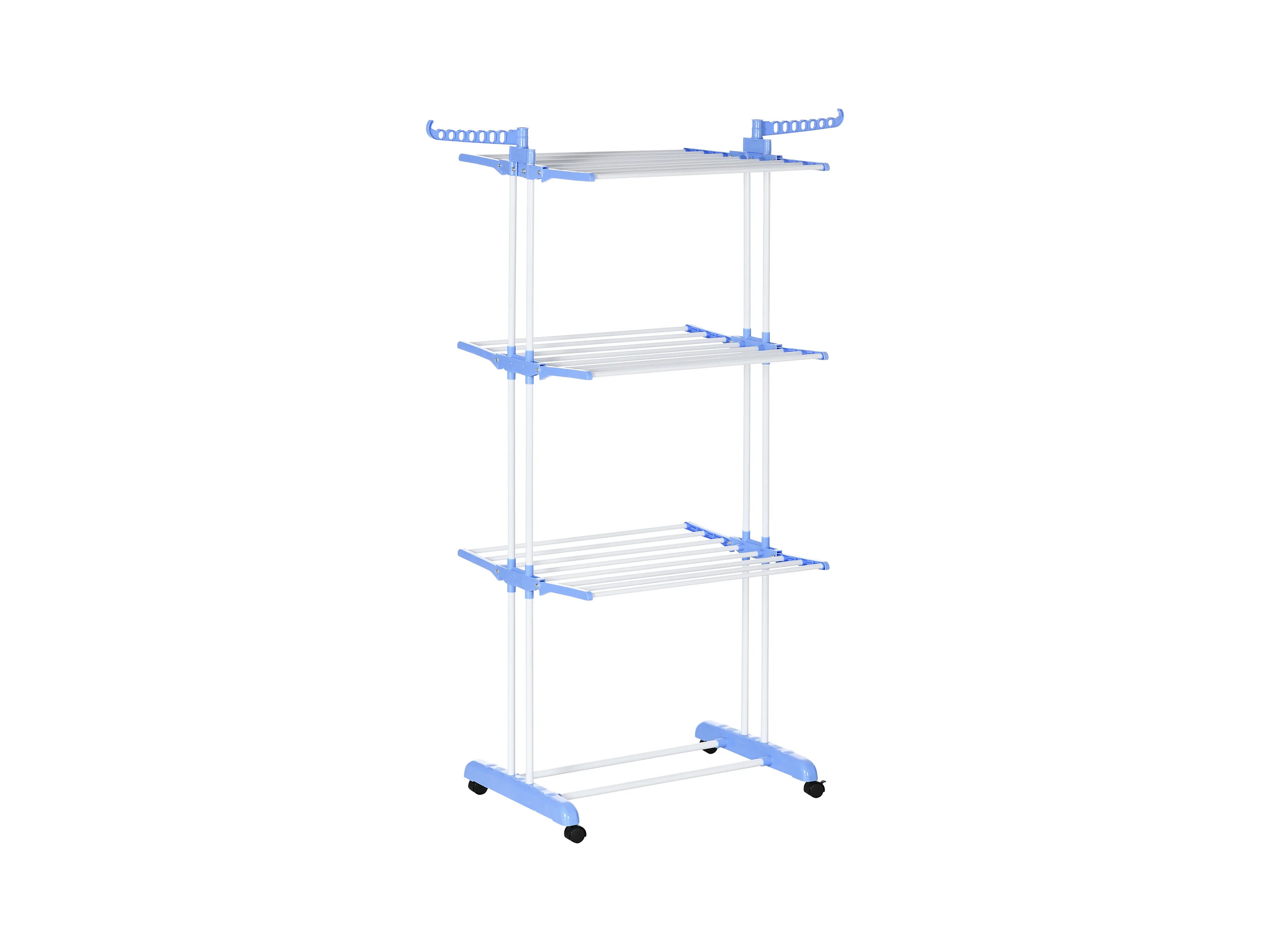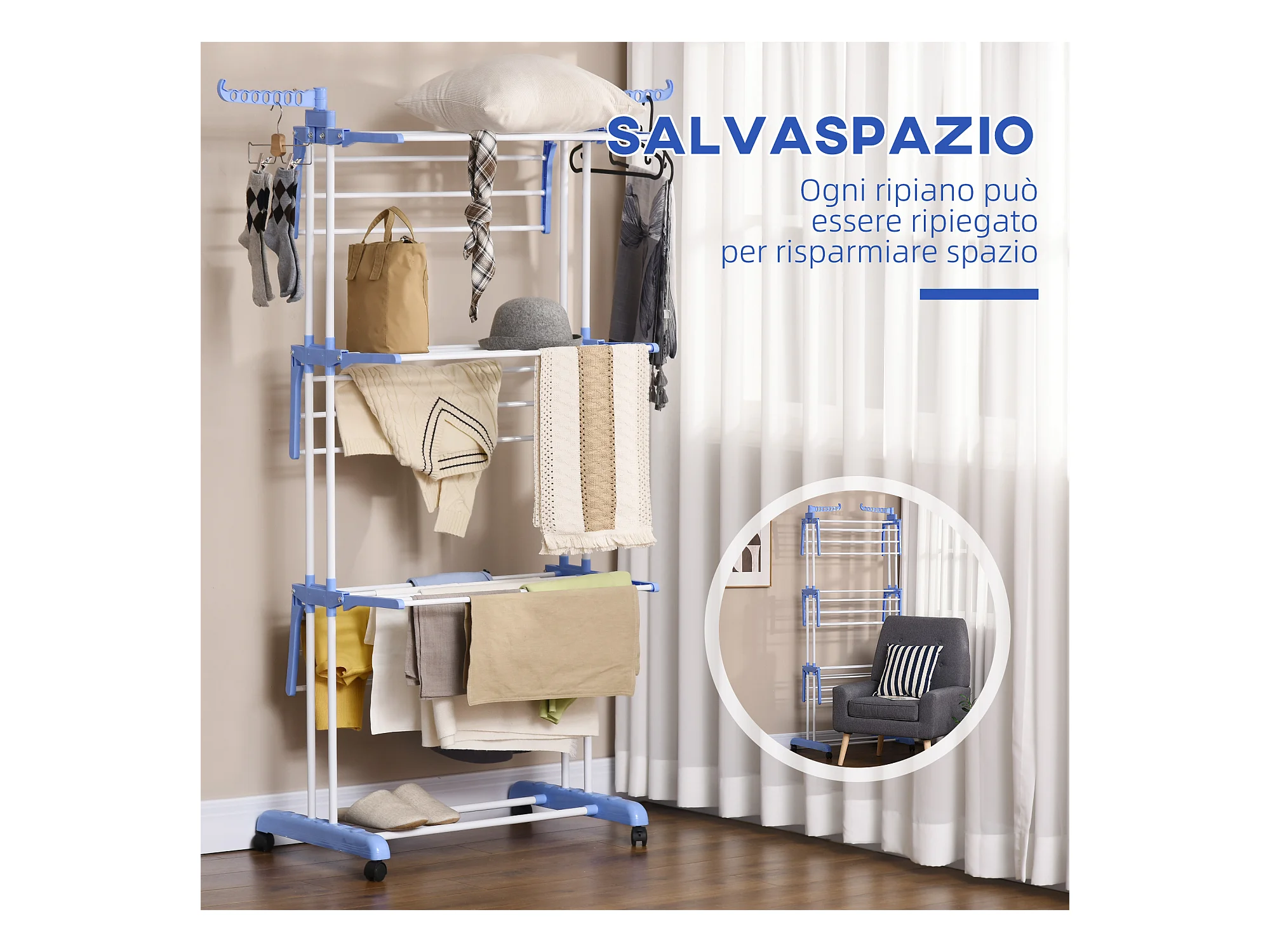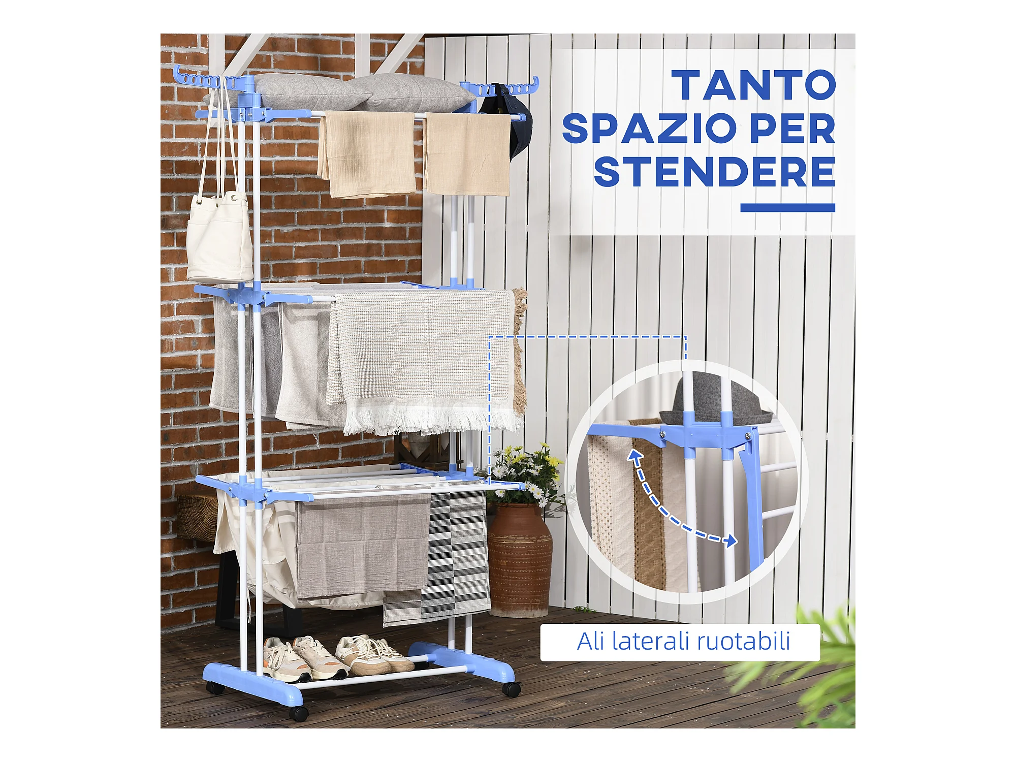 Stendibiancheria 4 livelli con 4 ruote girevoli bianco argento