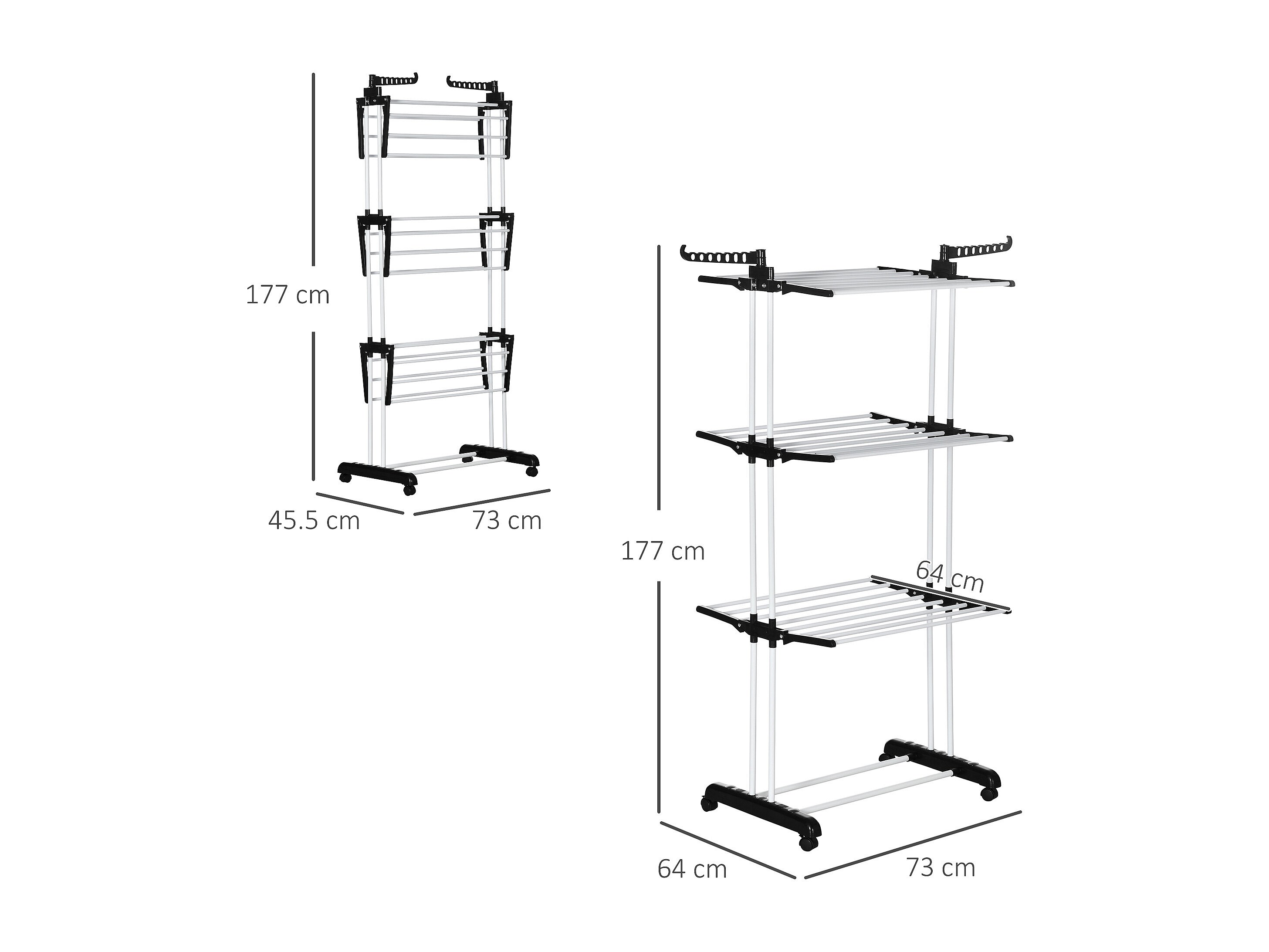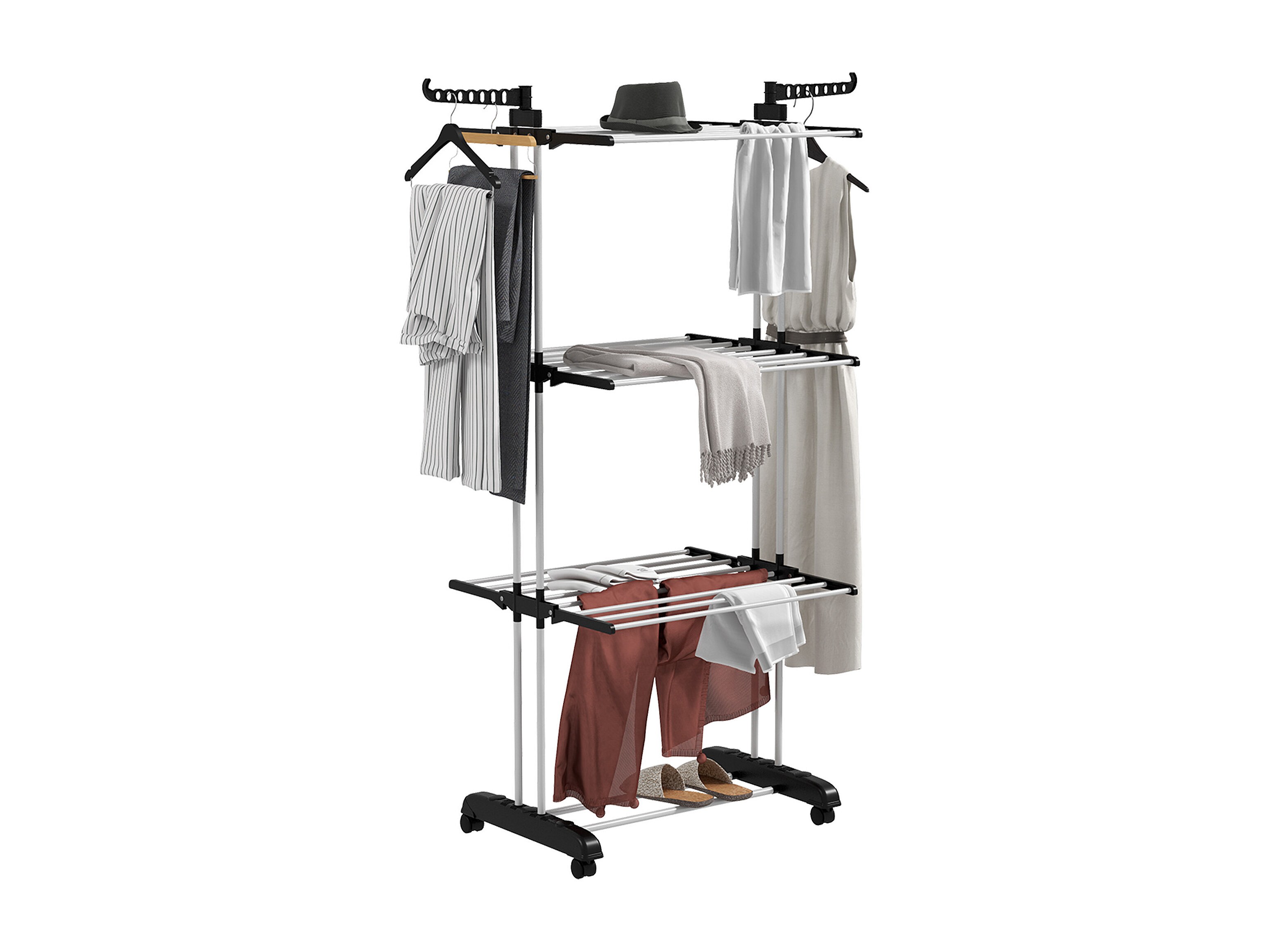 Stendibiancheria a 4 livelli con 4 ruote girevoli in acciaio e pp nero