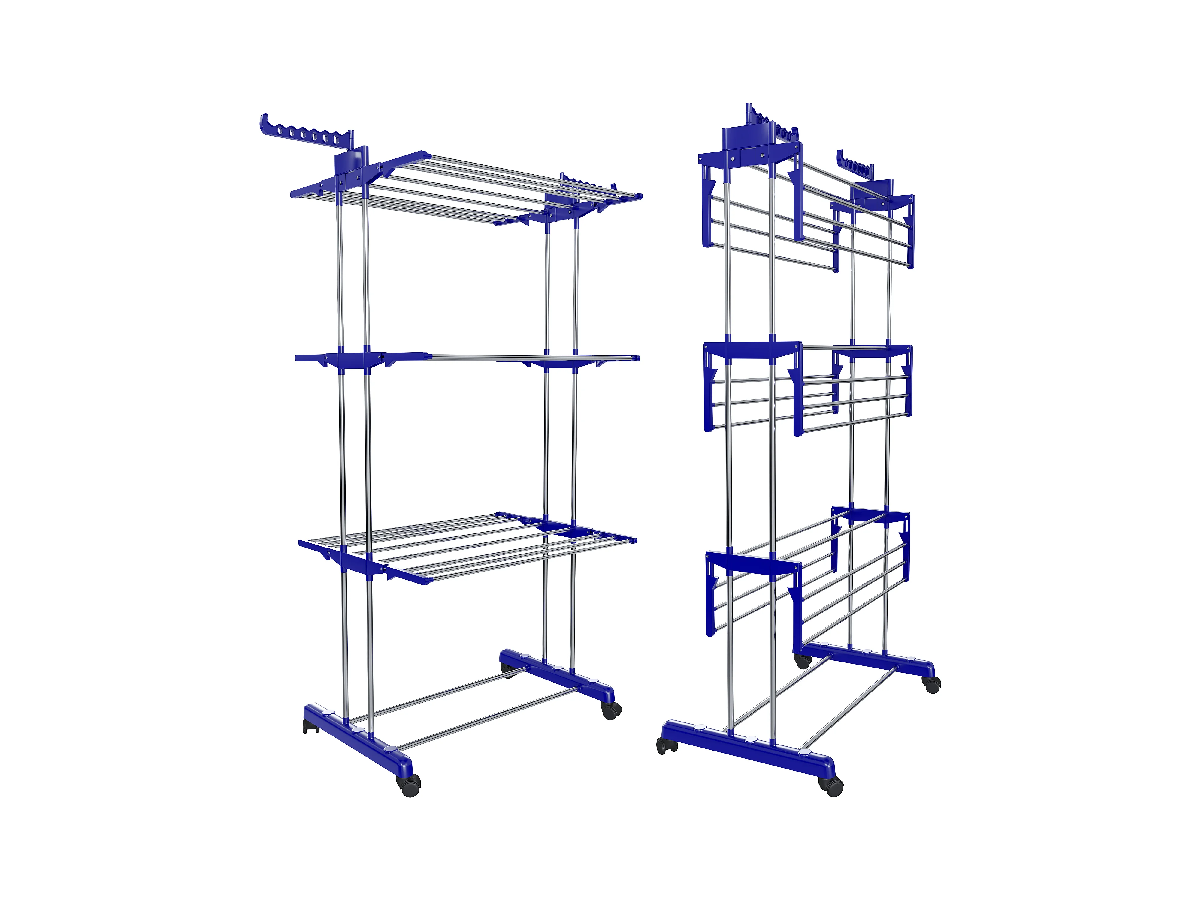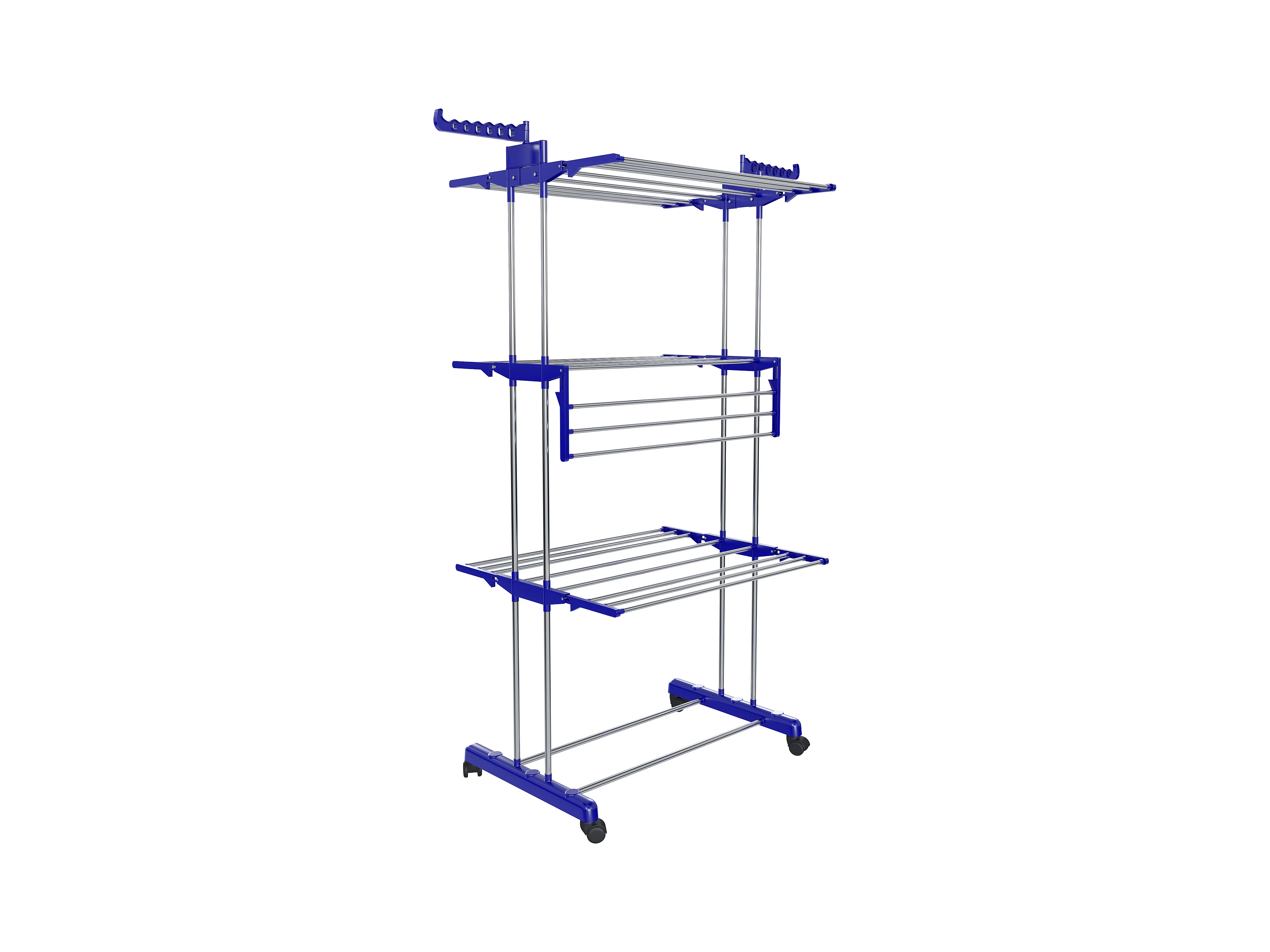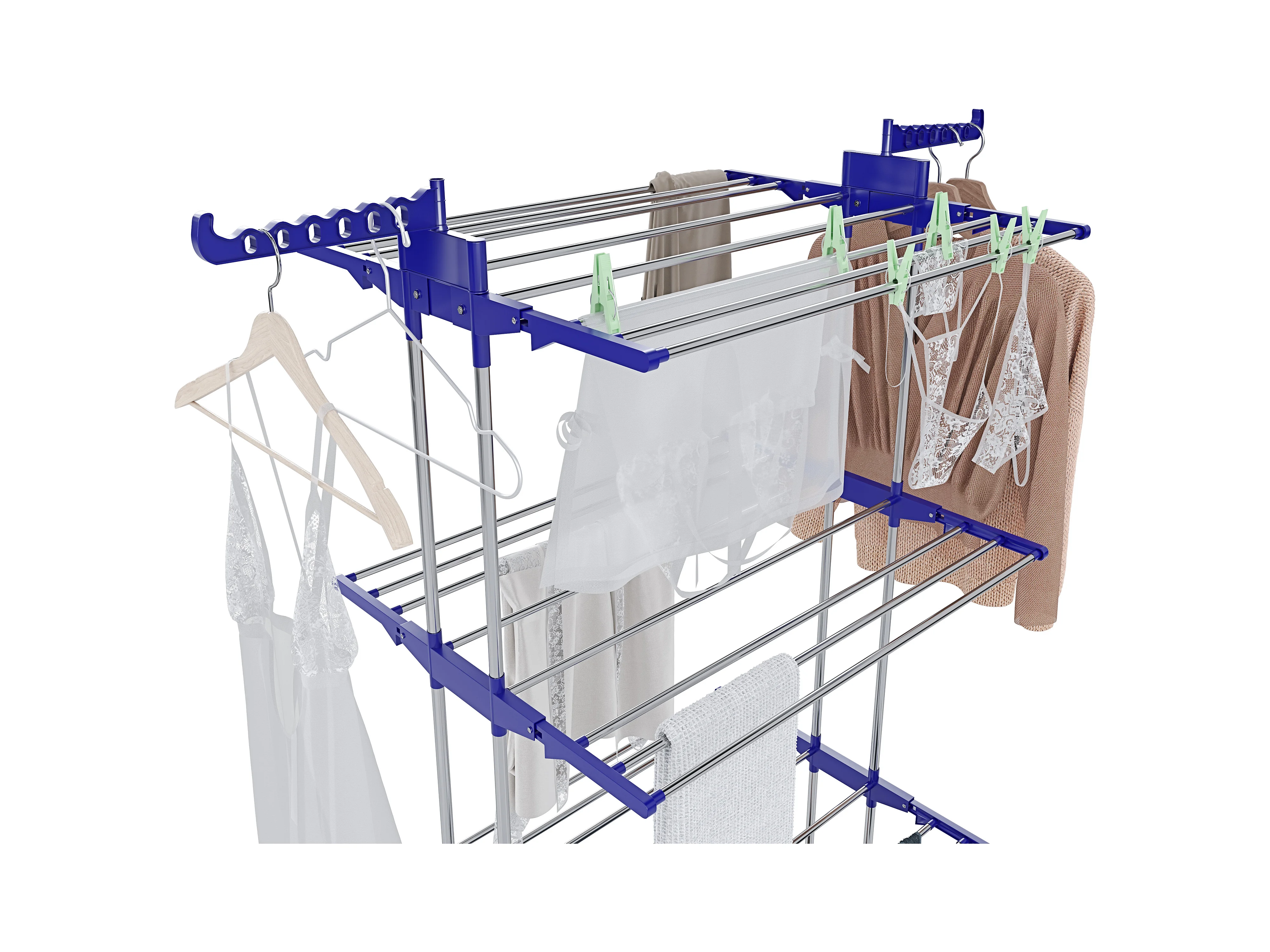 Stendino verticale pieghevole a 4 livelli e 6 ruote blu e bianco