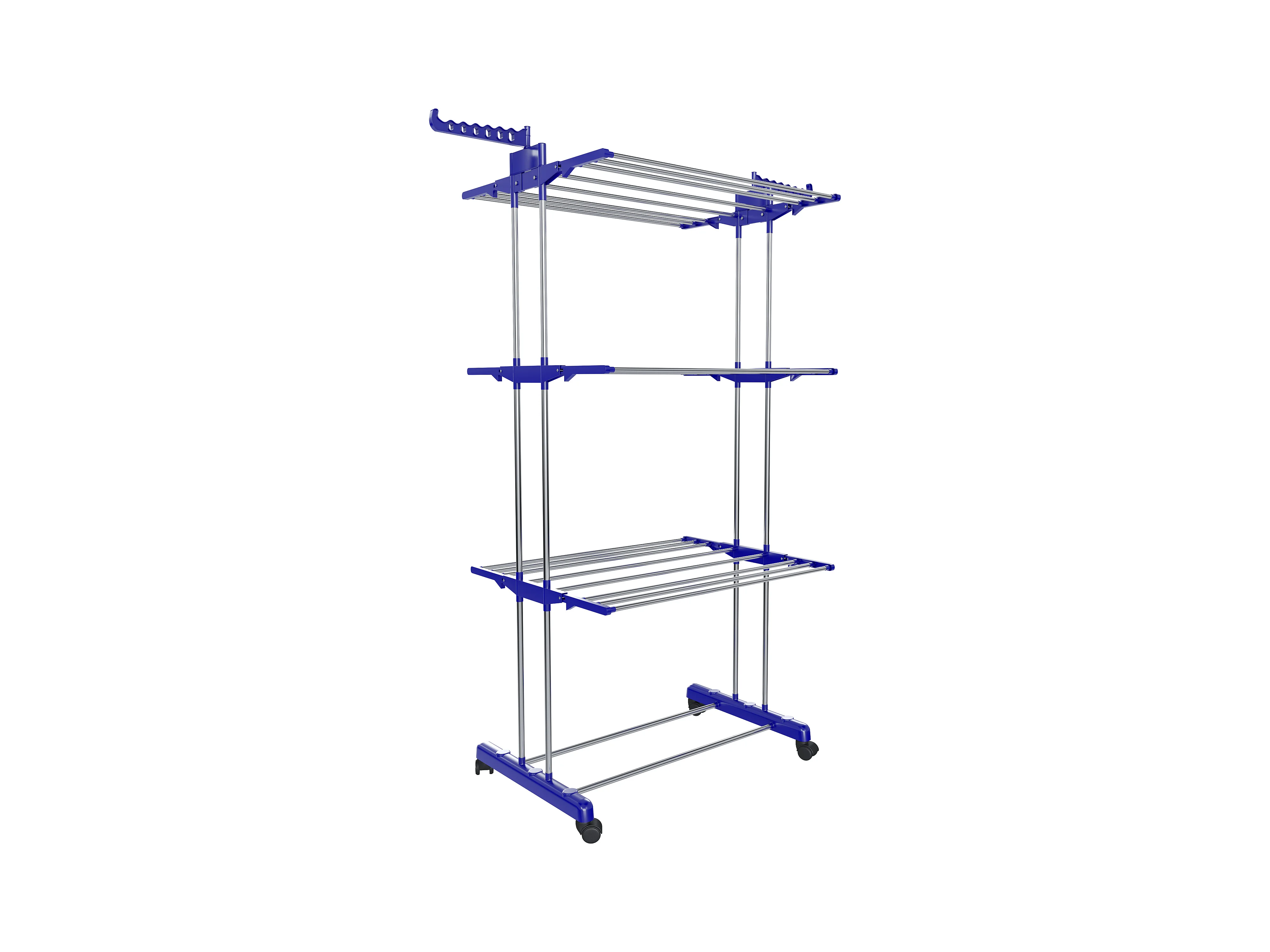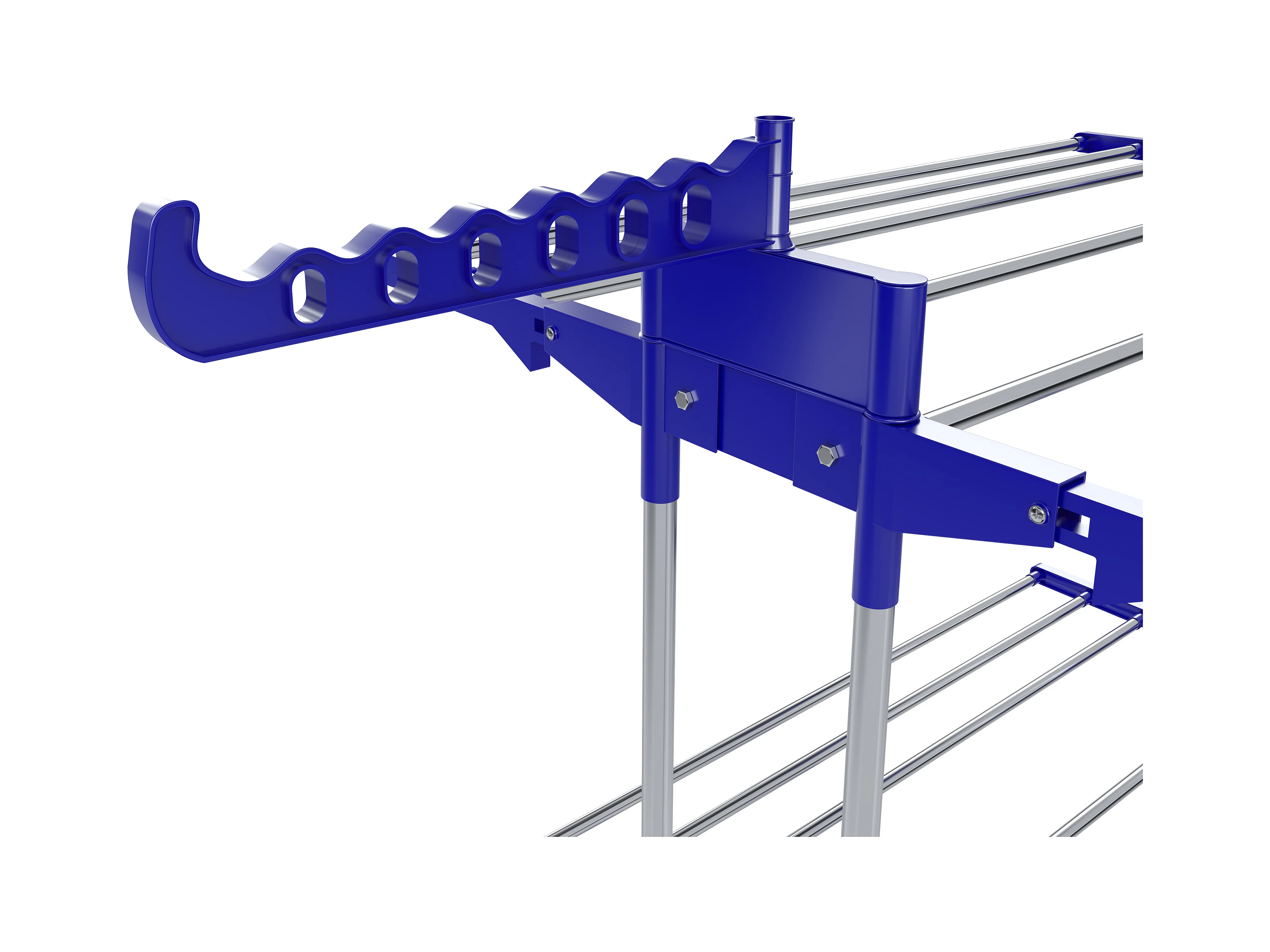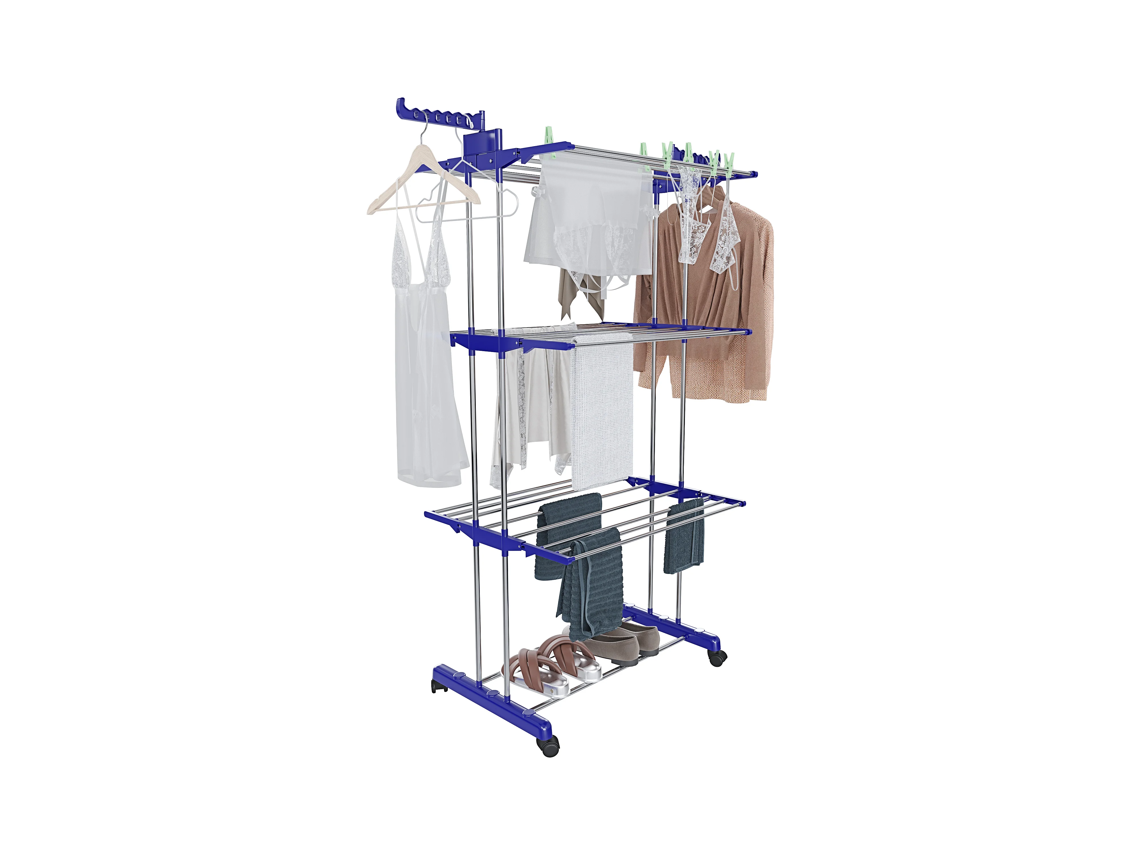 Stendino verticale pieghevole a 4 livelli e 6 ruote blu e bianco