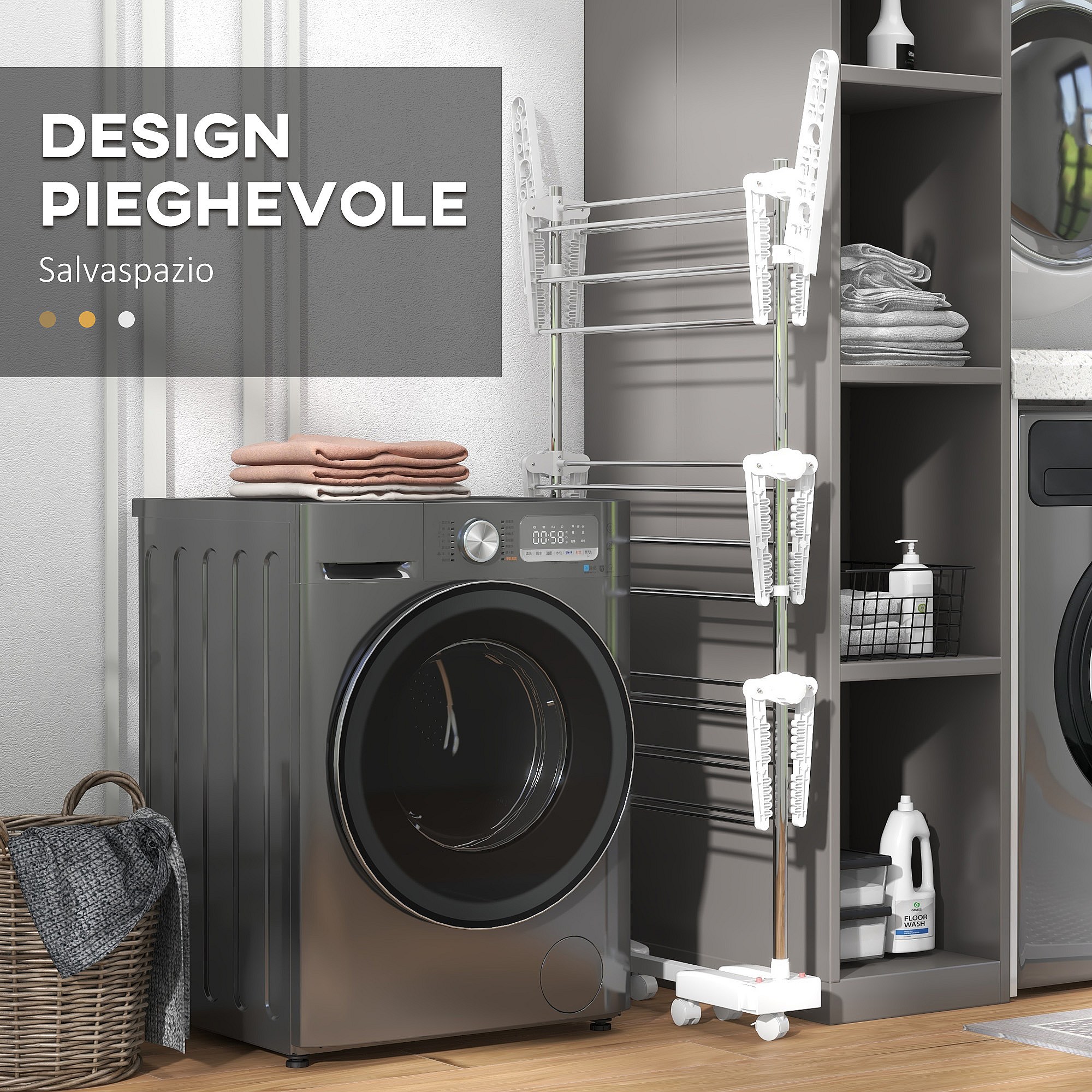 Stendibiancheria verticale 3 ripiani con ruote in acciaio inox