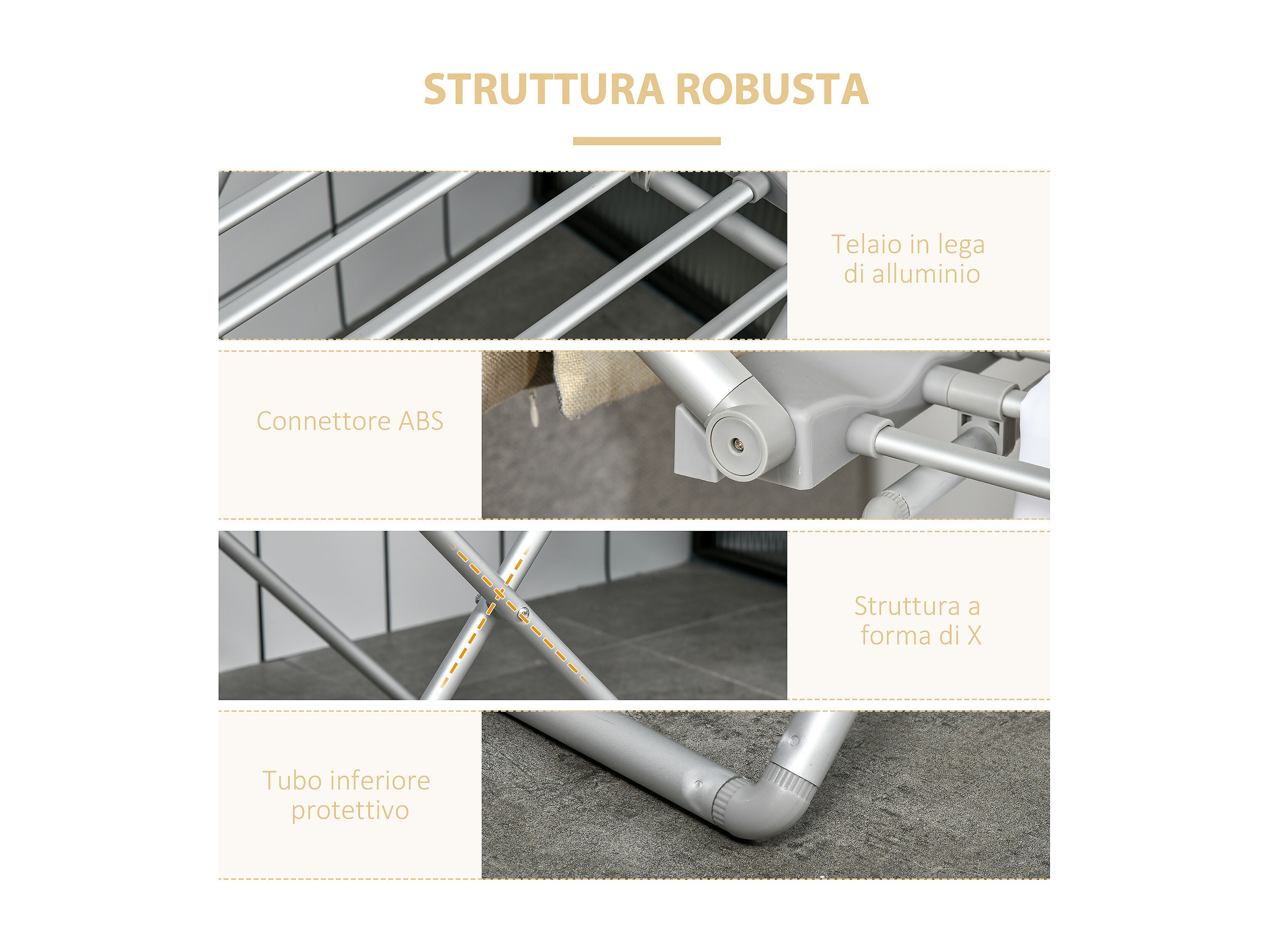 Stendino elettrico riscaldato con ali pieghevole in alluminio