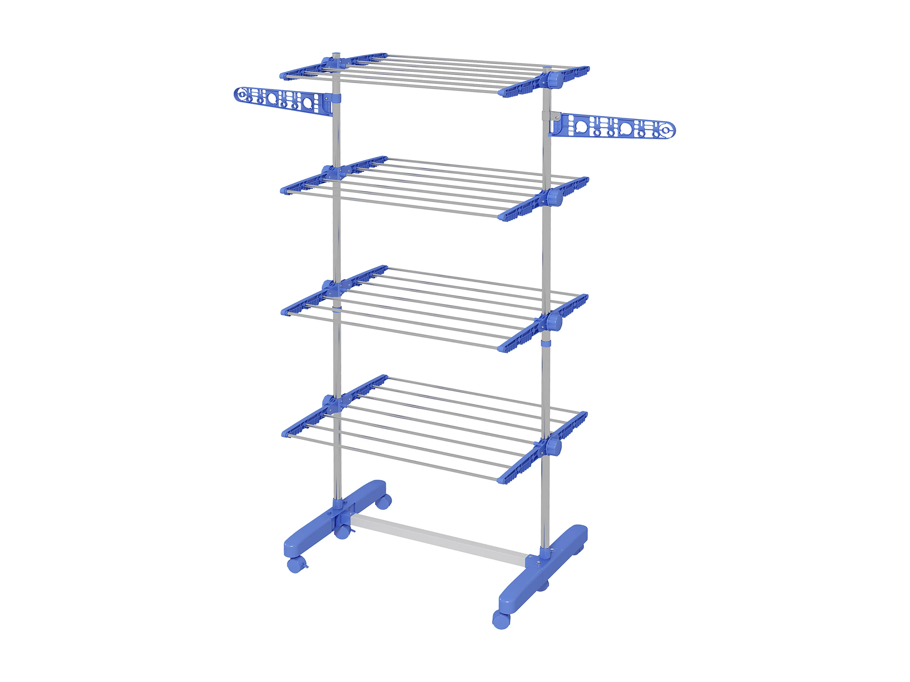 Stendino verticale pieghevole a 4 livelli e 6 ruote blu e bianco