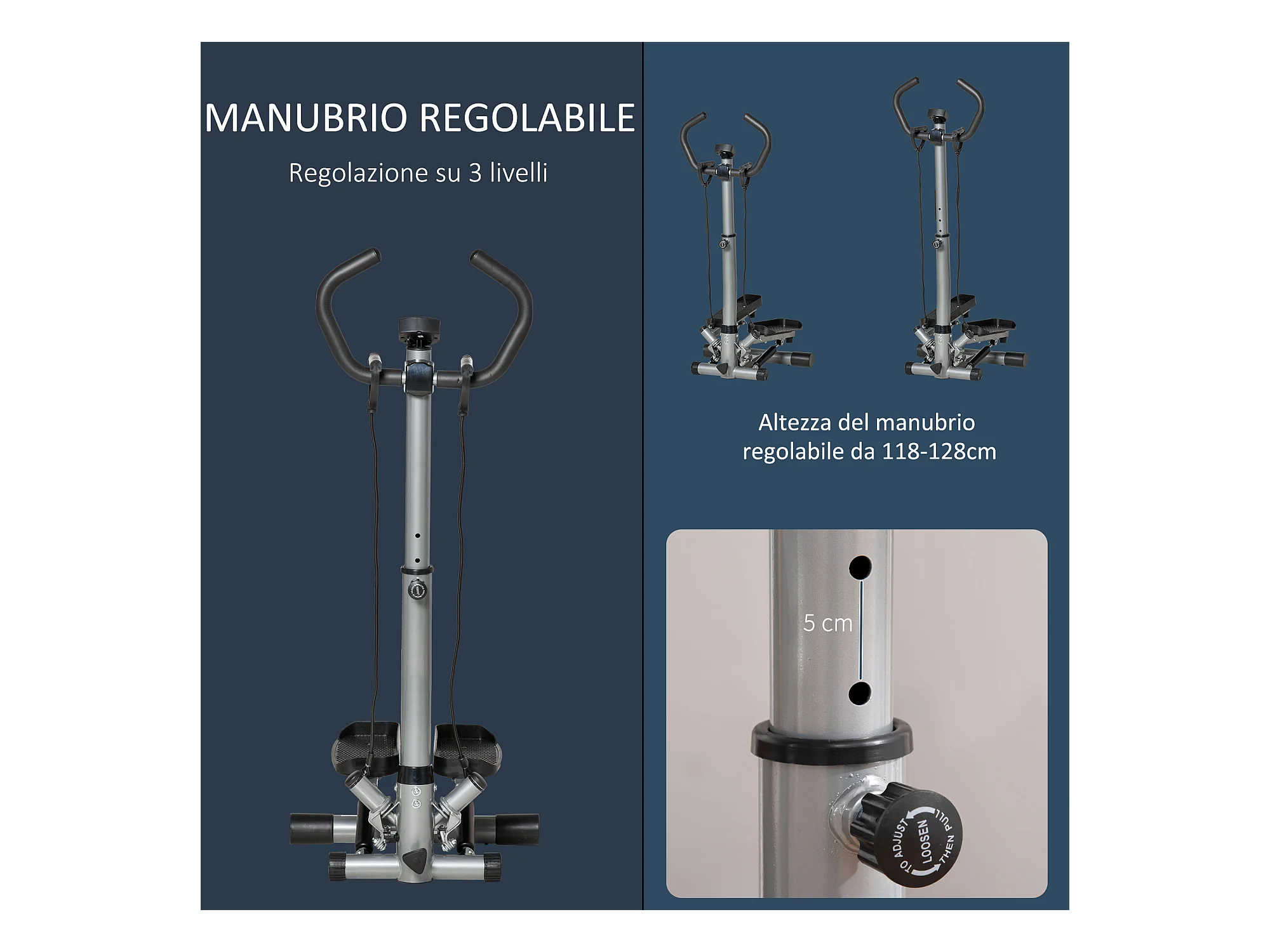 Stepper con manubrio regolabile monitor lcd ed elastici casa e palestra