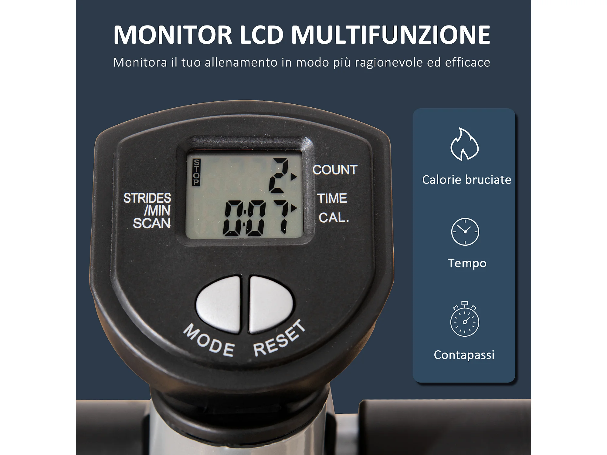Stepper con monitor lcd, manubrio regolabile ed elastici bianco grigio