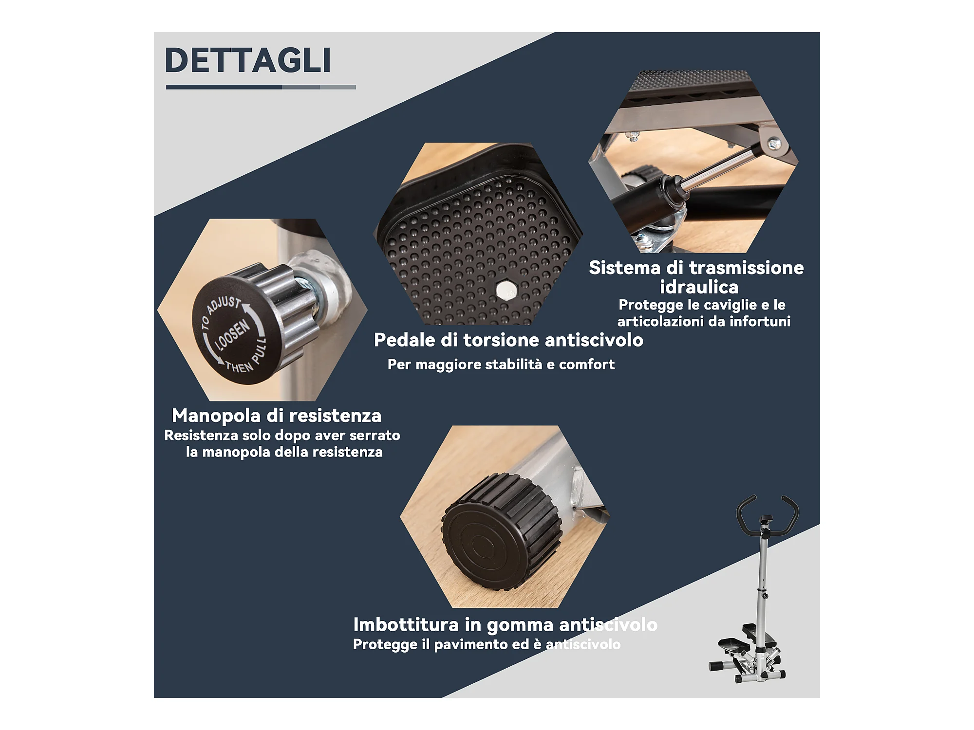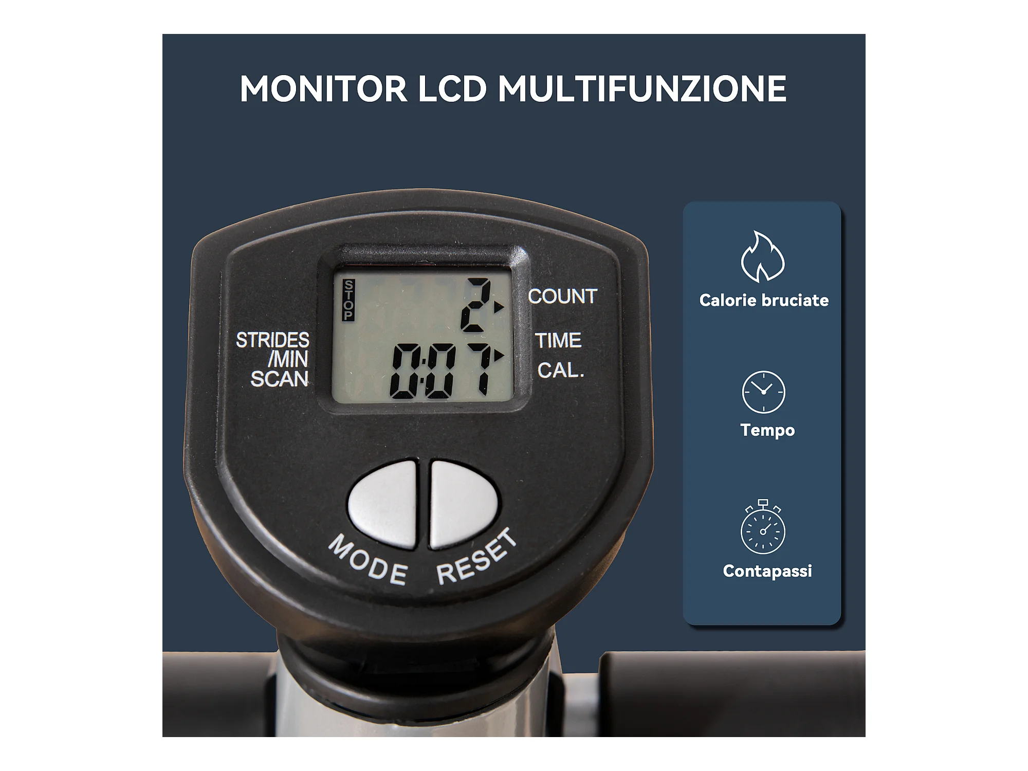 Stepper con manubrio monitor lcd e pedali antiscivolo in acciaio e abs