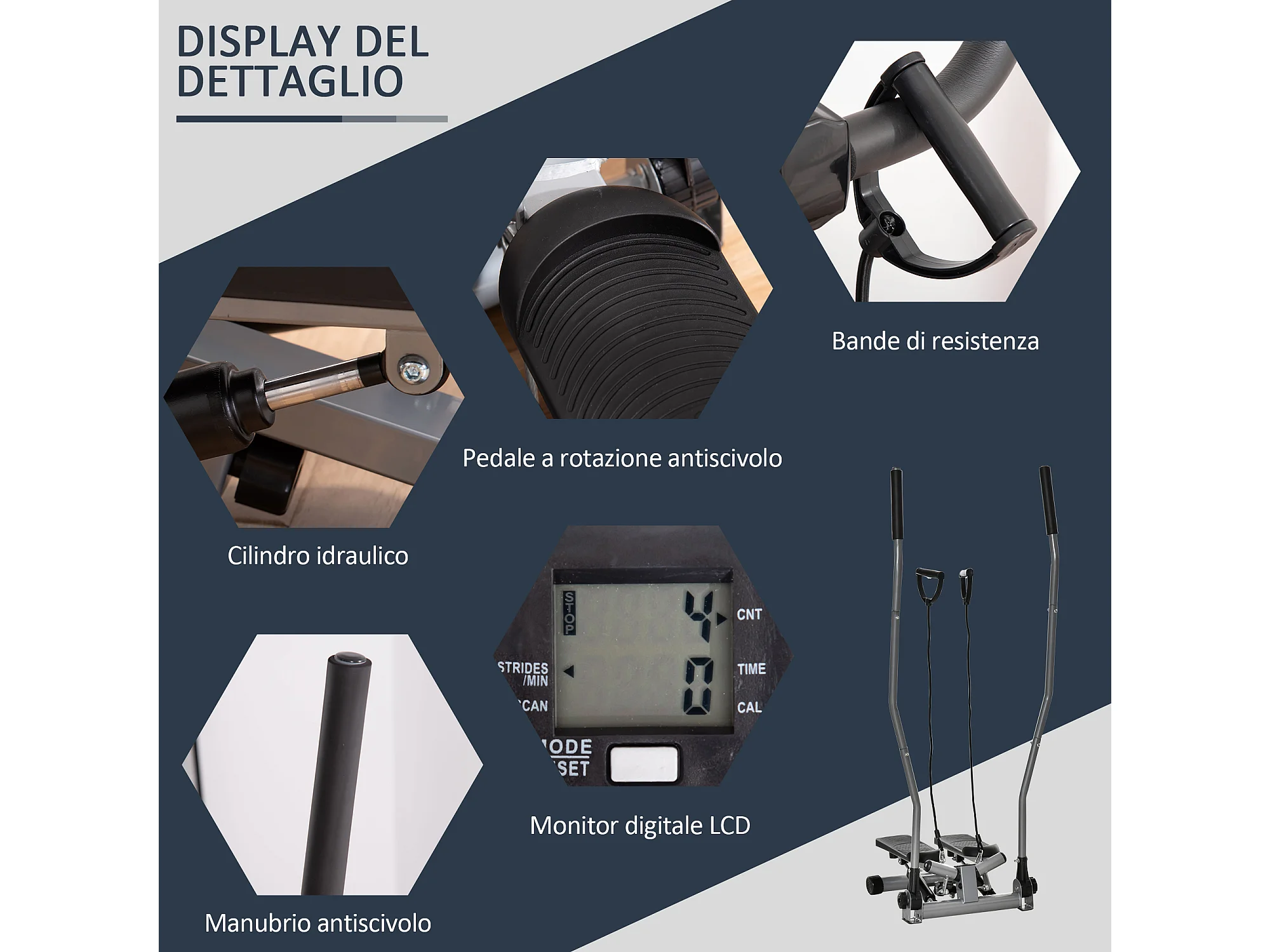 Stepper con manubrio regolabile monitor lcd ed elastici casa e palestra