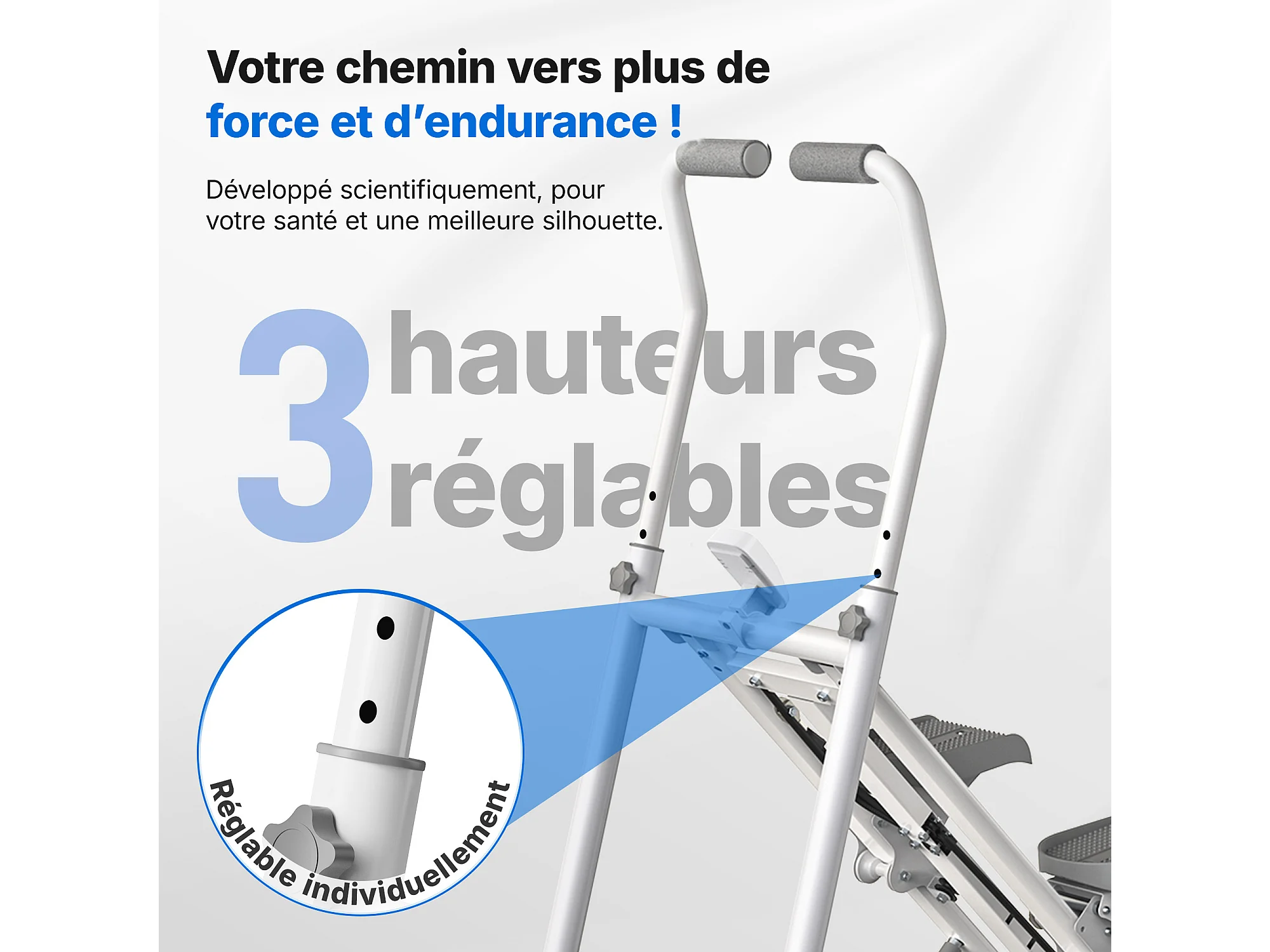 Stepper pieghevole verticale MERACH, 2 livelli di resistenza, 3 posizioni pedali regolabili, display LCD, carico max 136 kg, bianco