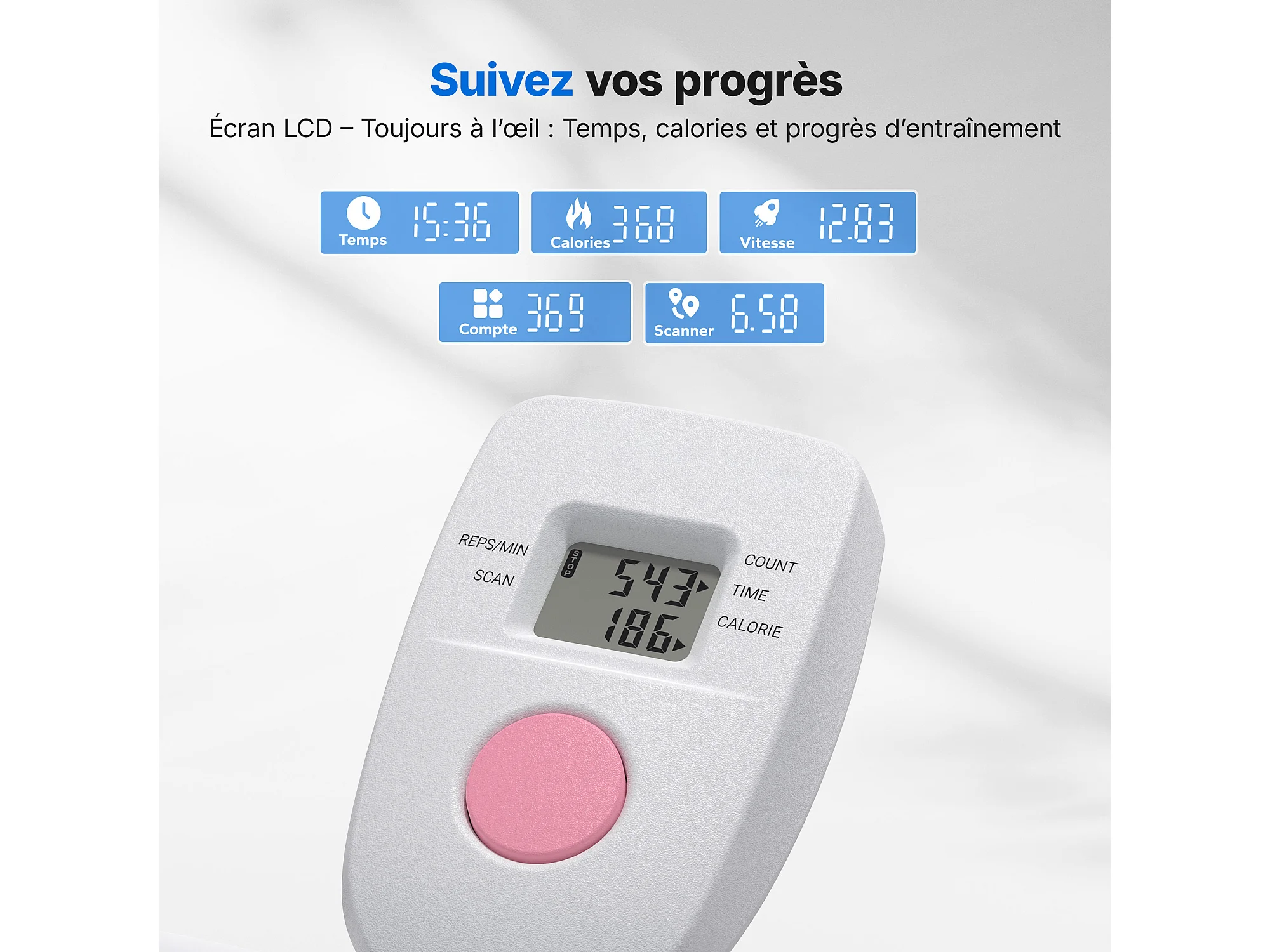 Attrezzo fitness MERACH, tipo equitazione, resistenza regolabile, schermo LCD, carico 160 kg, pieghevole, per addome/gambe/schiena, bianco