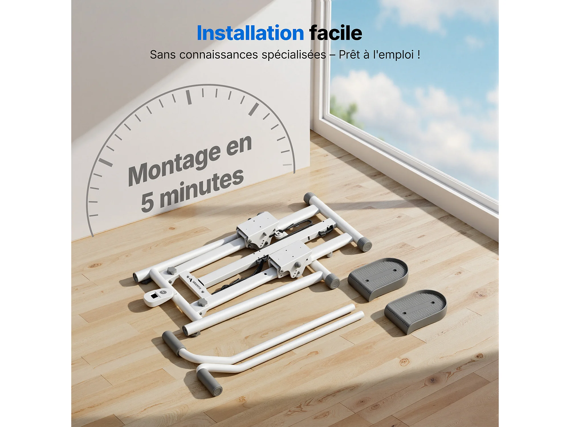 Stepper verticale pieghevole MERACH, 3 livelli di resistenza, manubrio regolabile in altezza e direzione, display LCD, carico max 150 kg, bianco