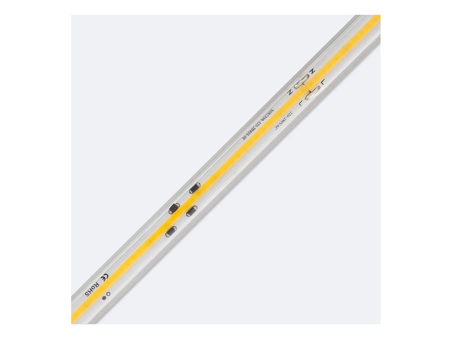 Striscia LED Regolabile 220V COB 320 LED/m Bianco Caldo 8W/m 720lm/m Larga 12mm IP65 CRI90 Taglio 50cm 15 m