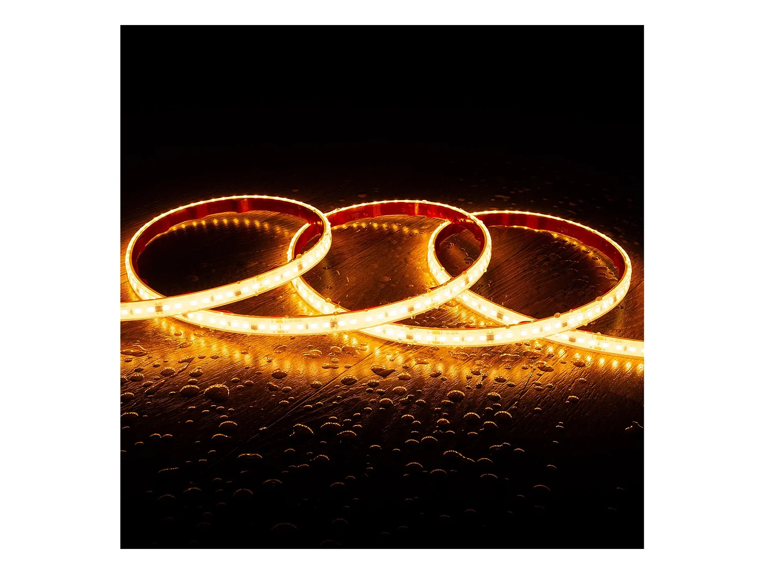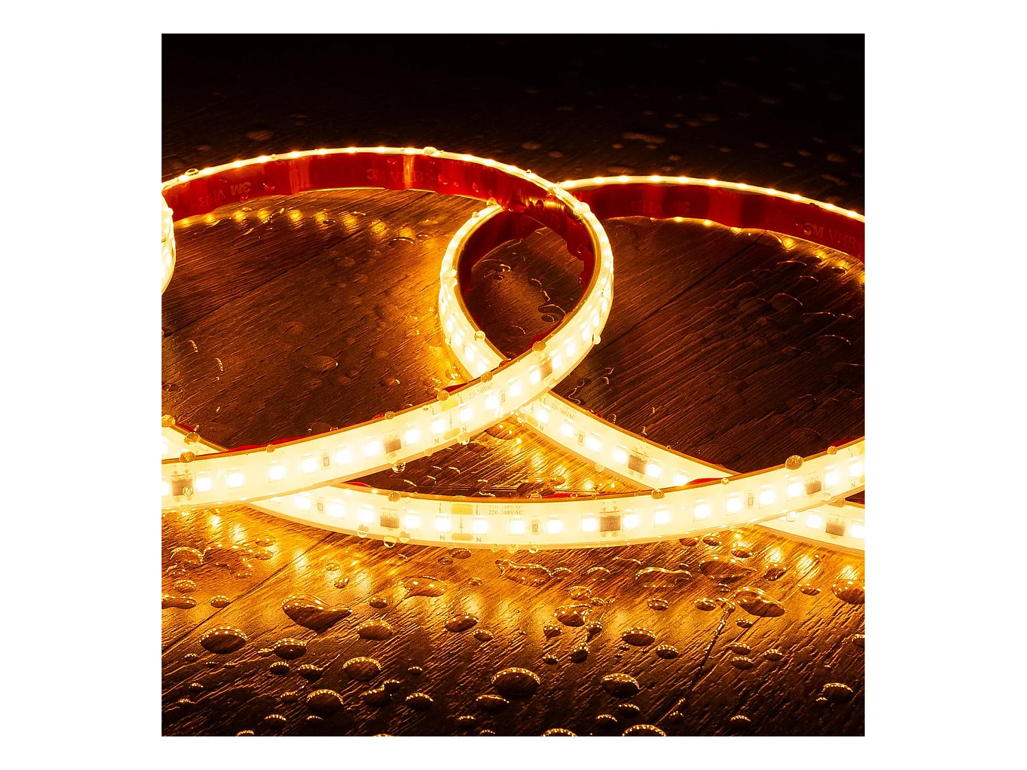 Striscia LED Regolabile 220V SMD Autorettificata 120LED/m 14W/m 1680lm/m SILICONE FLEX Larga 12mm IP67 Taglio 10cm 2200K Super Caldo 15 m