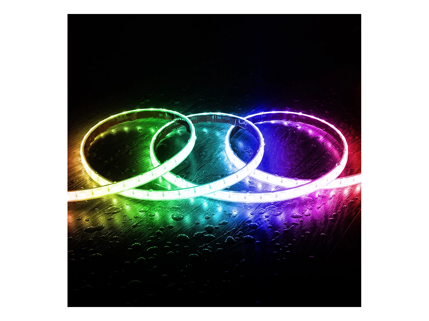 Striscia LED RGB 220V SMD 60 LED/m 15W/m SILICONE FLEX Larga 12mm IP67 Taglio 100cm con Telecomando 5 m