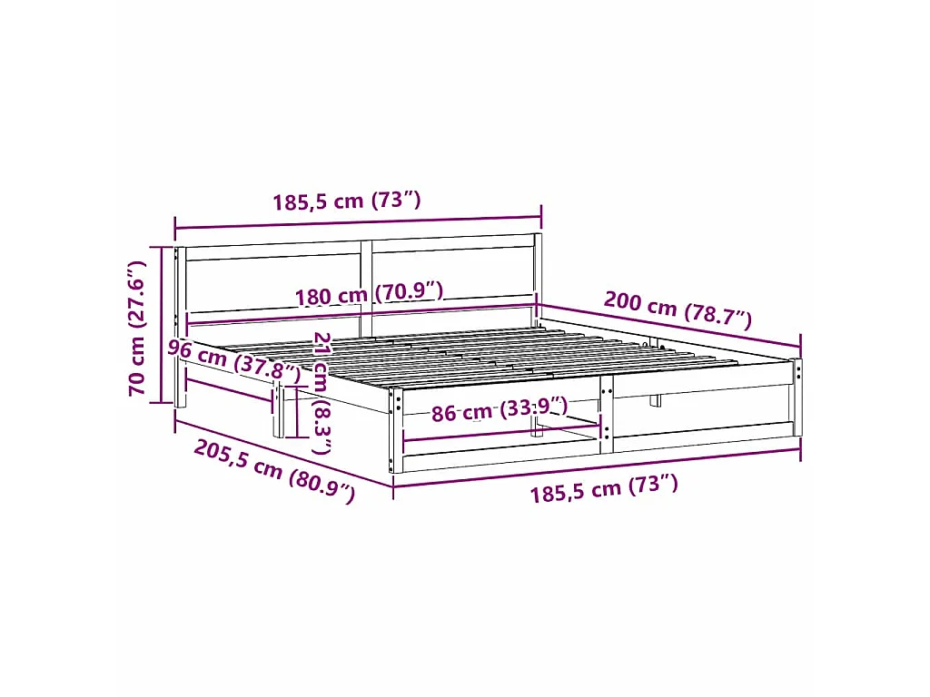 Struttura del letto Bianco 180 x 200 cm Pino massello