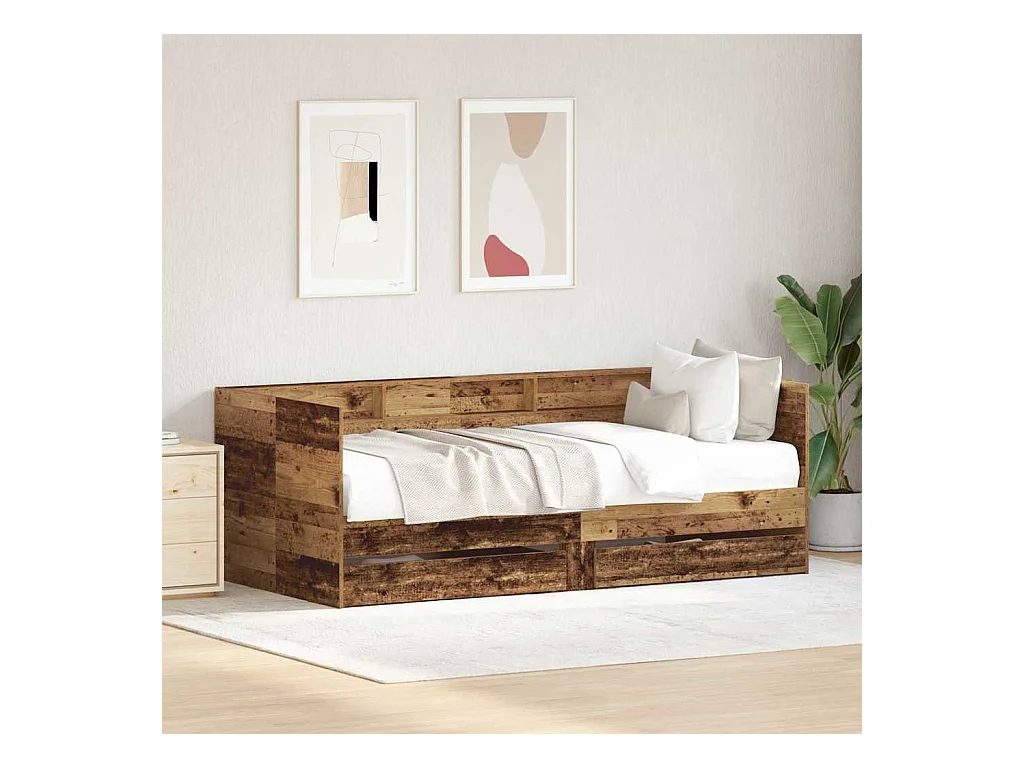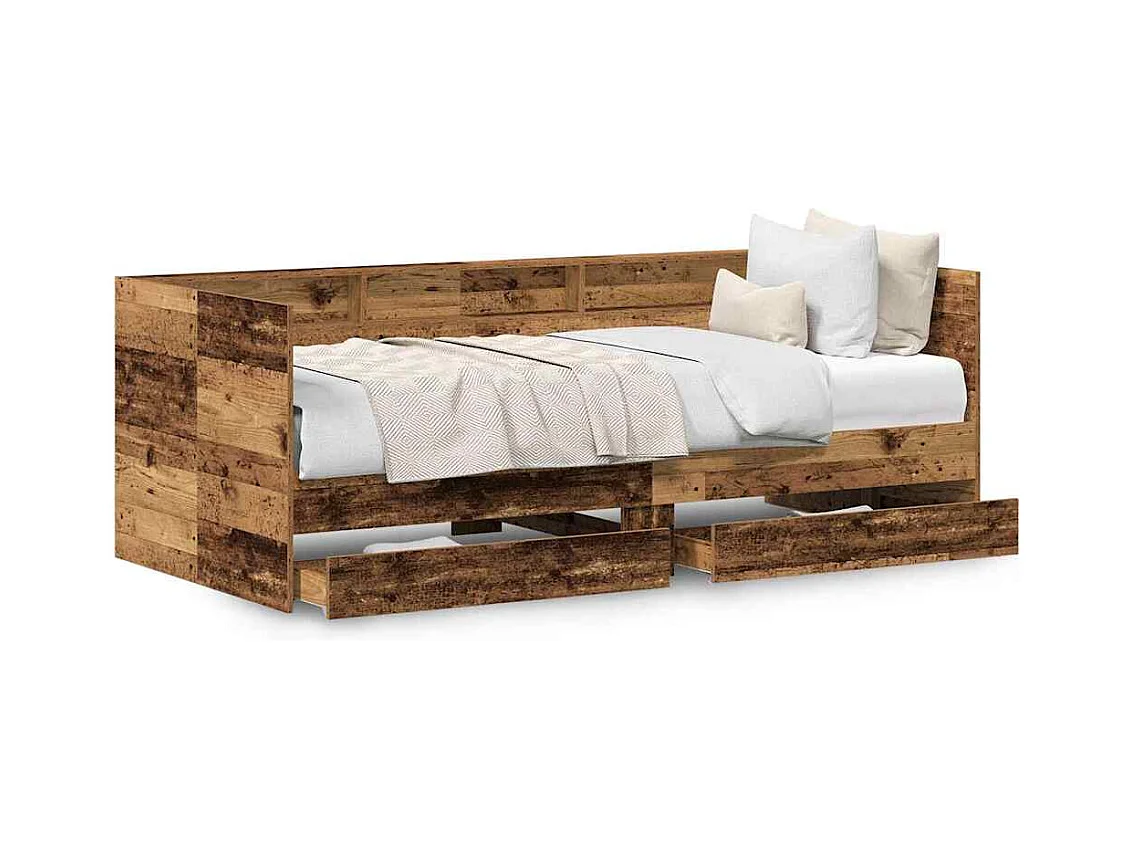 Struttura divano letto con cassetti Legno antico 75 x 190 cm
