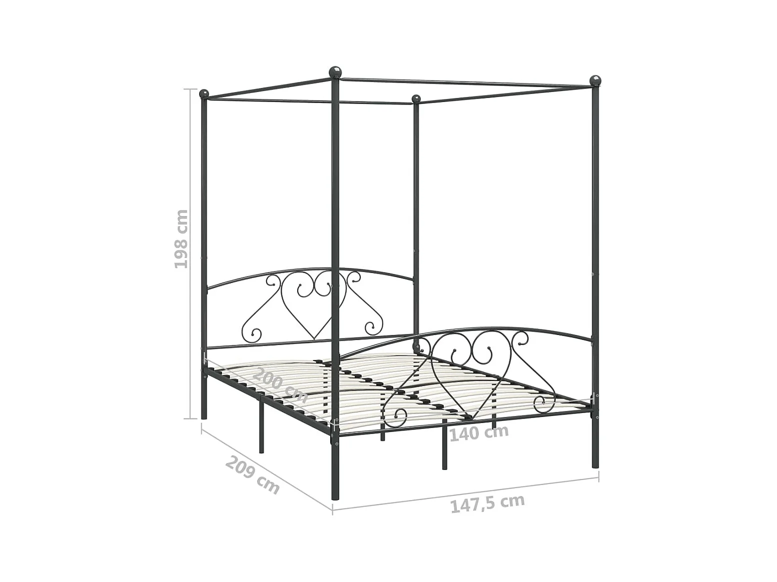 Struttura letto a baldacchino senza materasso in metallo grigio 140x200 cm