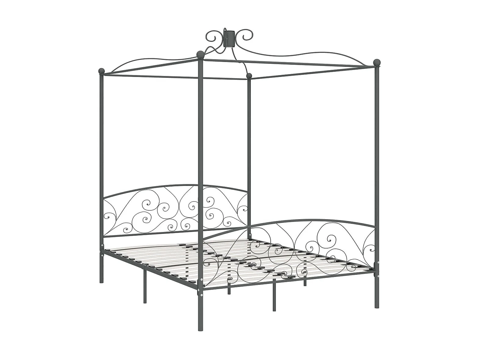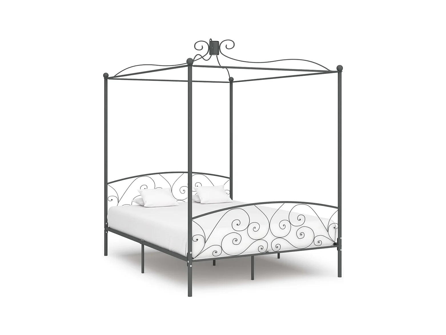 Struttura letto a baldacchino senza materasso in metallo grigio 160x200 cm