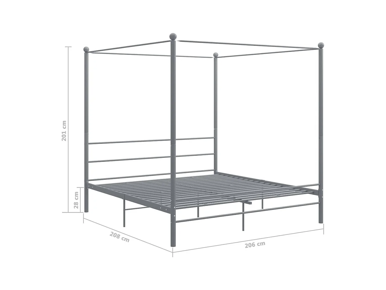 Struttura letto a baldacchino senza materasso in metallo grigio 200x200 cm