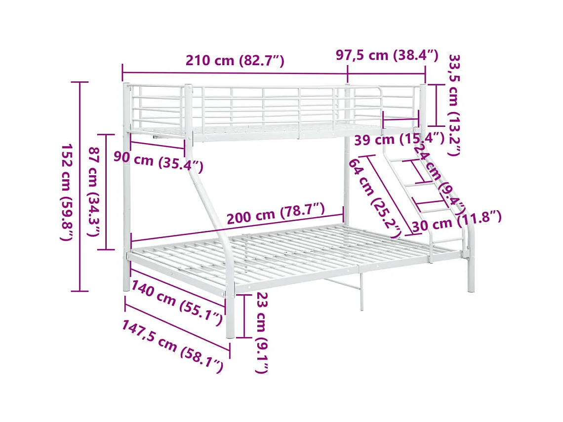 Struttura letto a castello senza materasso Bianco 140x200 cm/90x200 cm