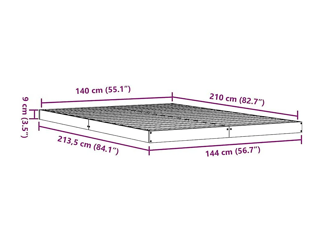 Struttura letto a terra Bianco 213.5 x 104 x 9 cm Pino massello