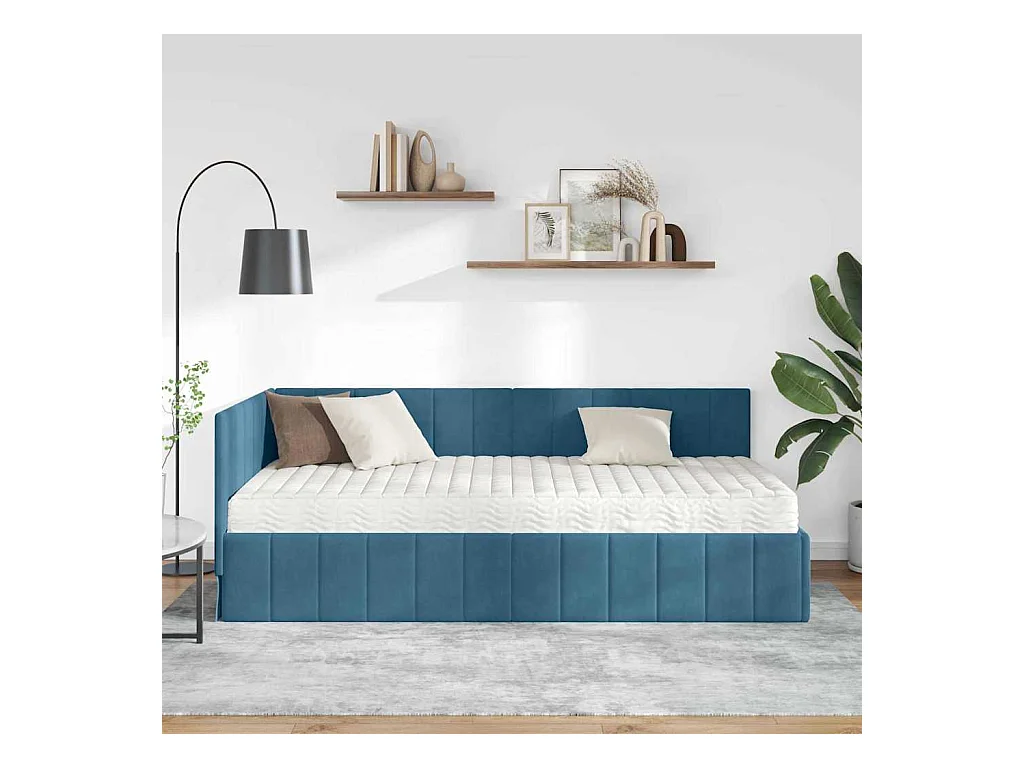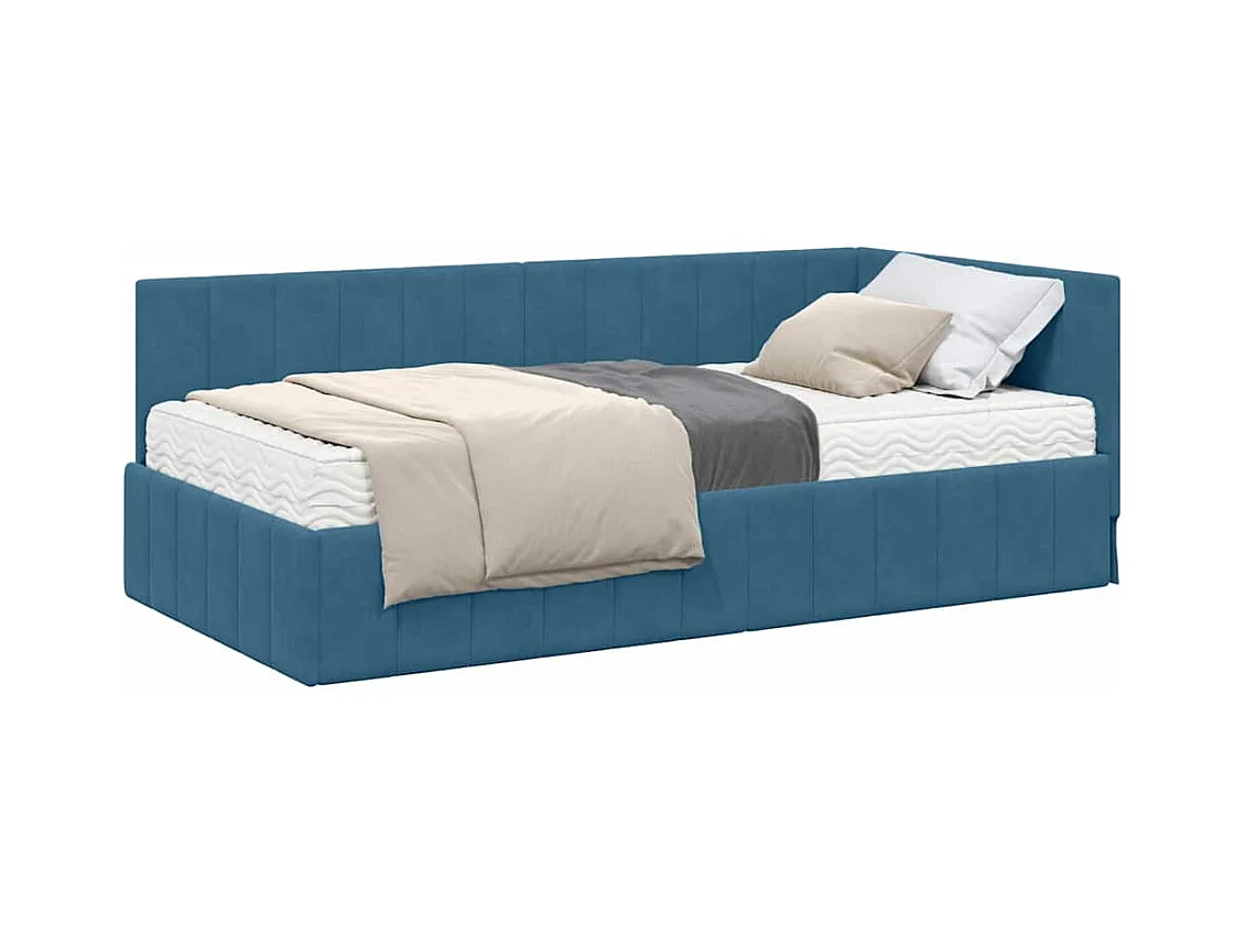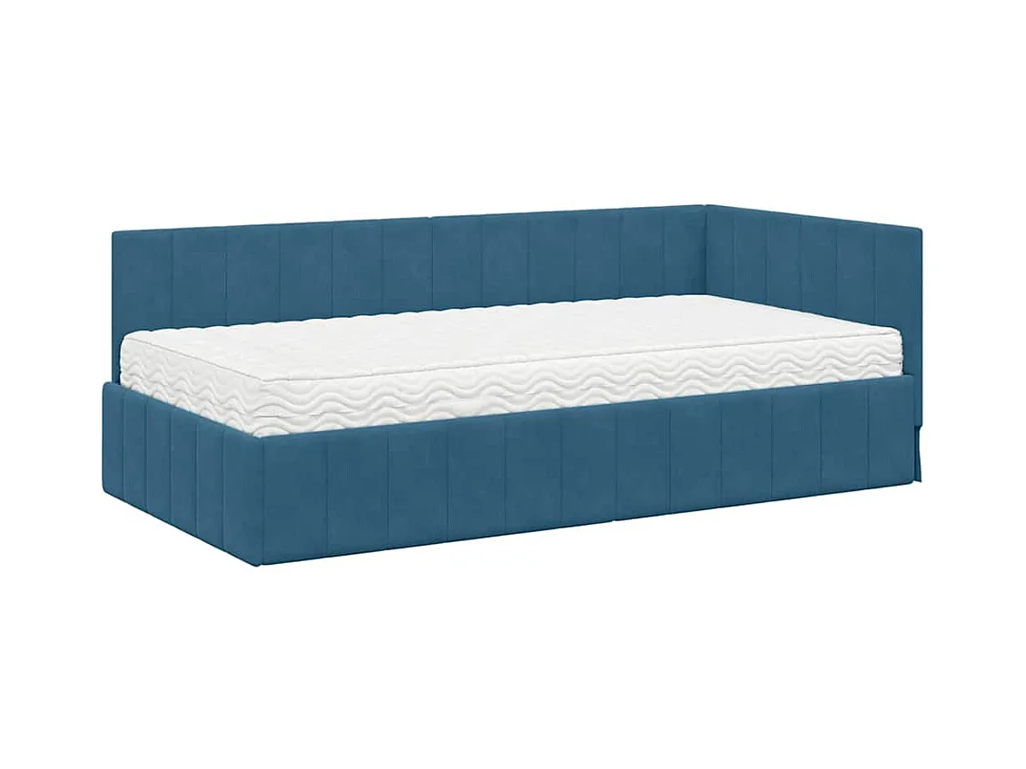 Struttura letto angolare con materasso Blu 90 x 200 cm Velluto