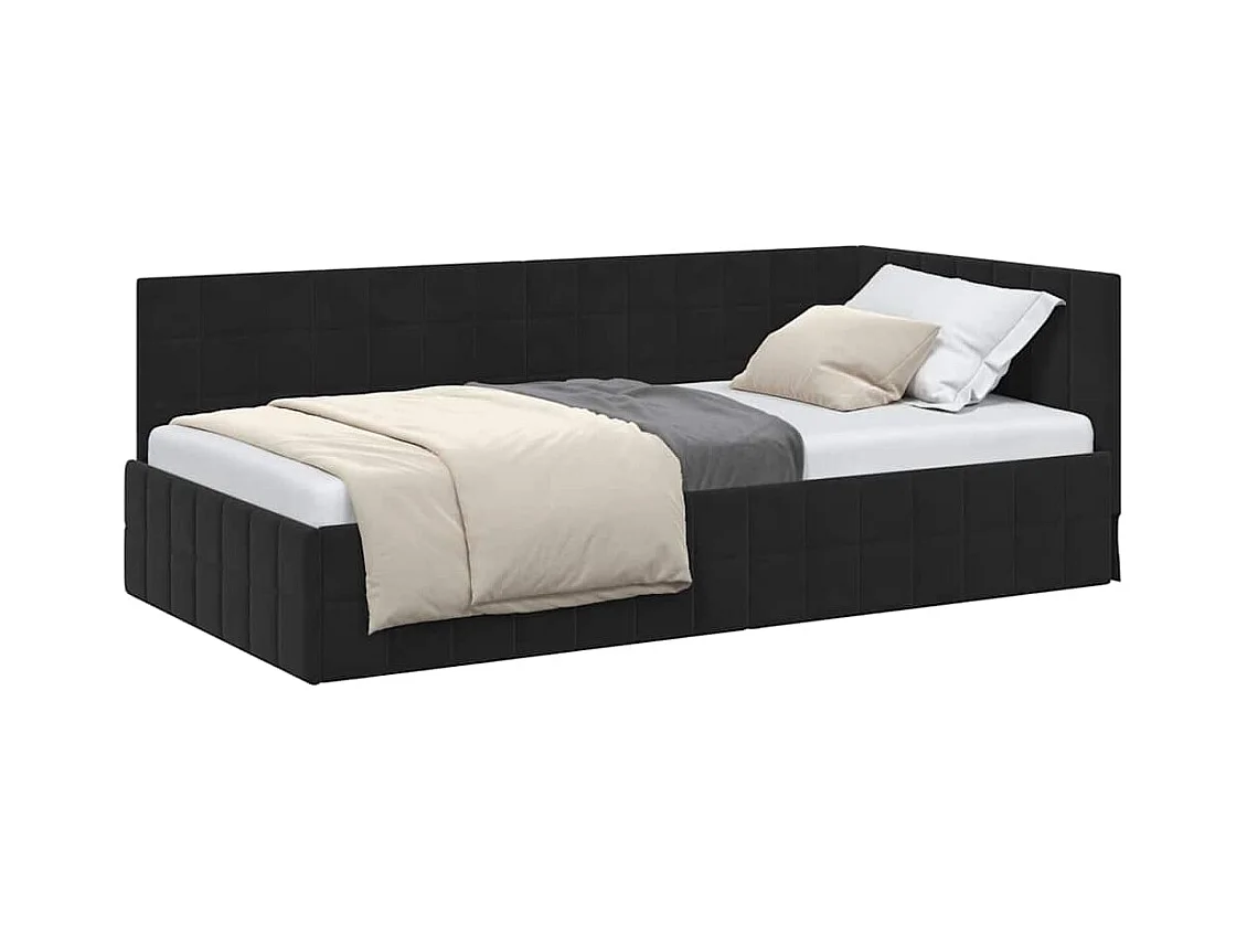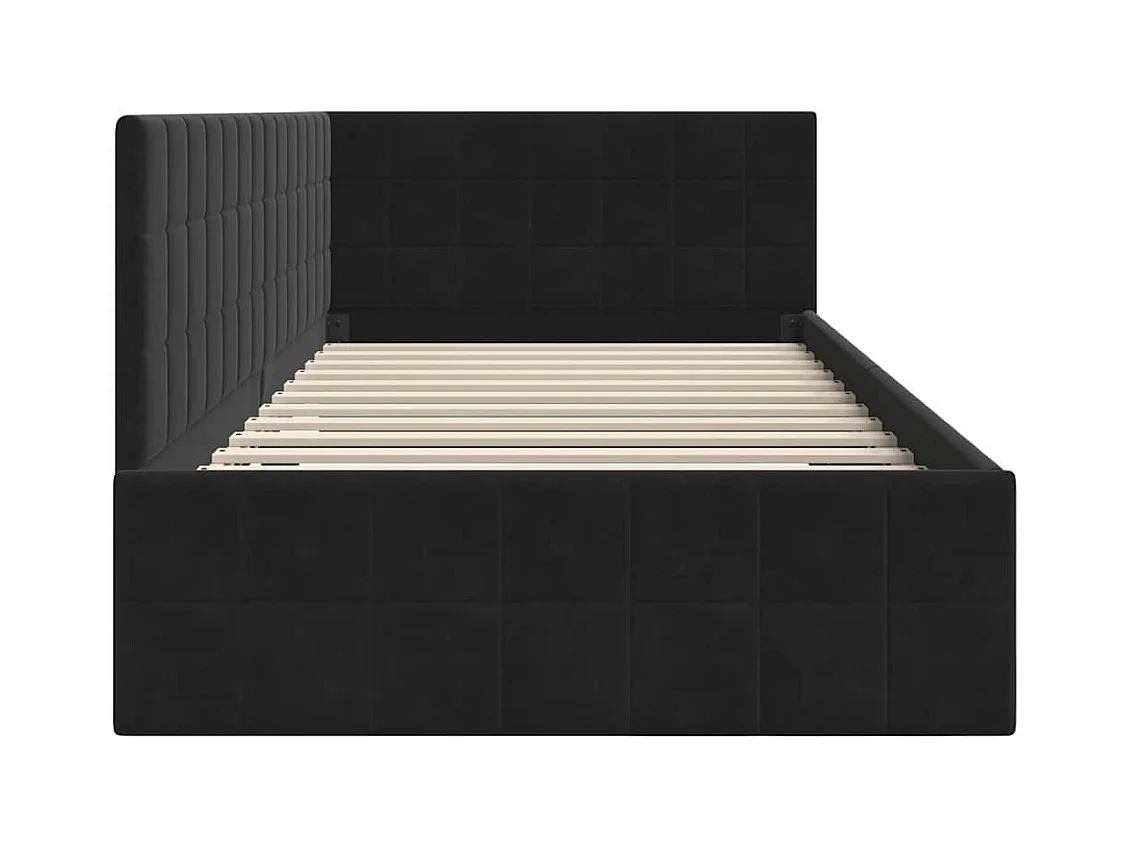 Struttura letto angolare con testiera Nero 90 x 190 cm Velluto