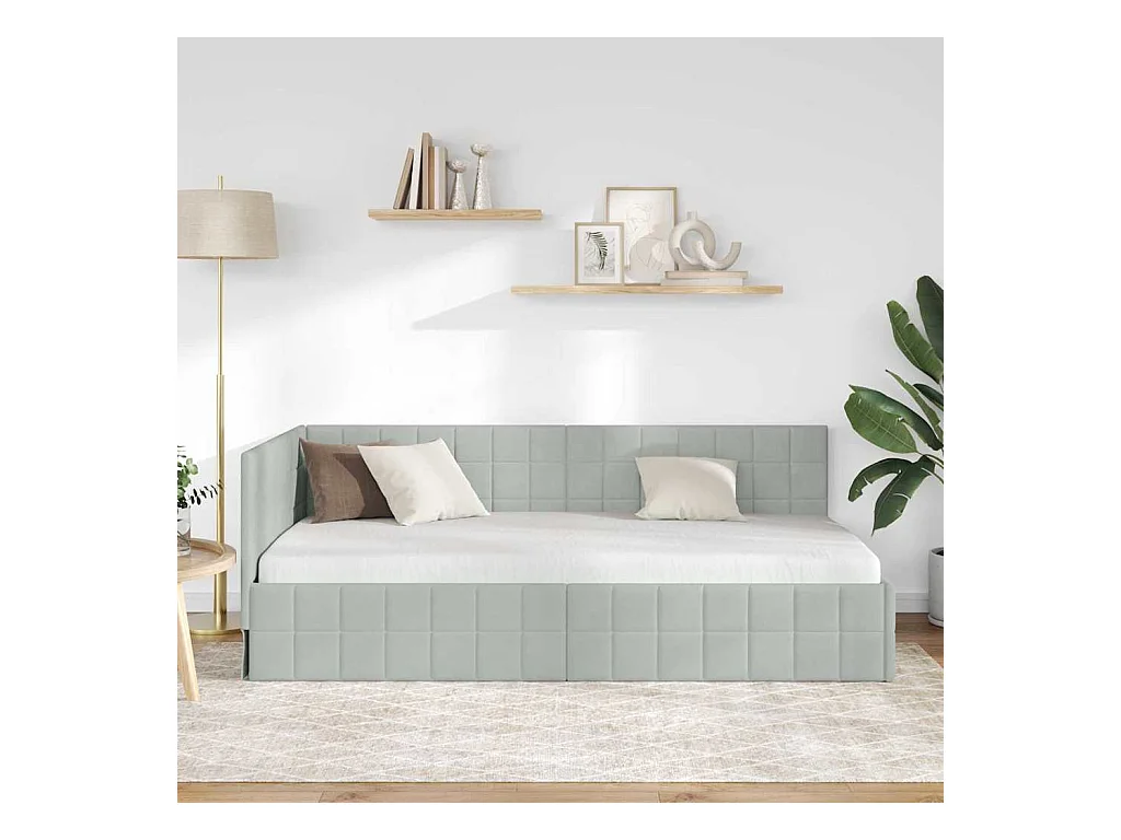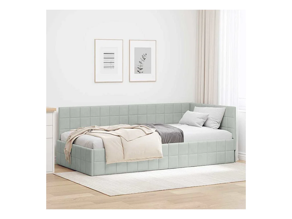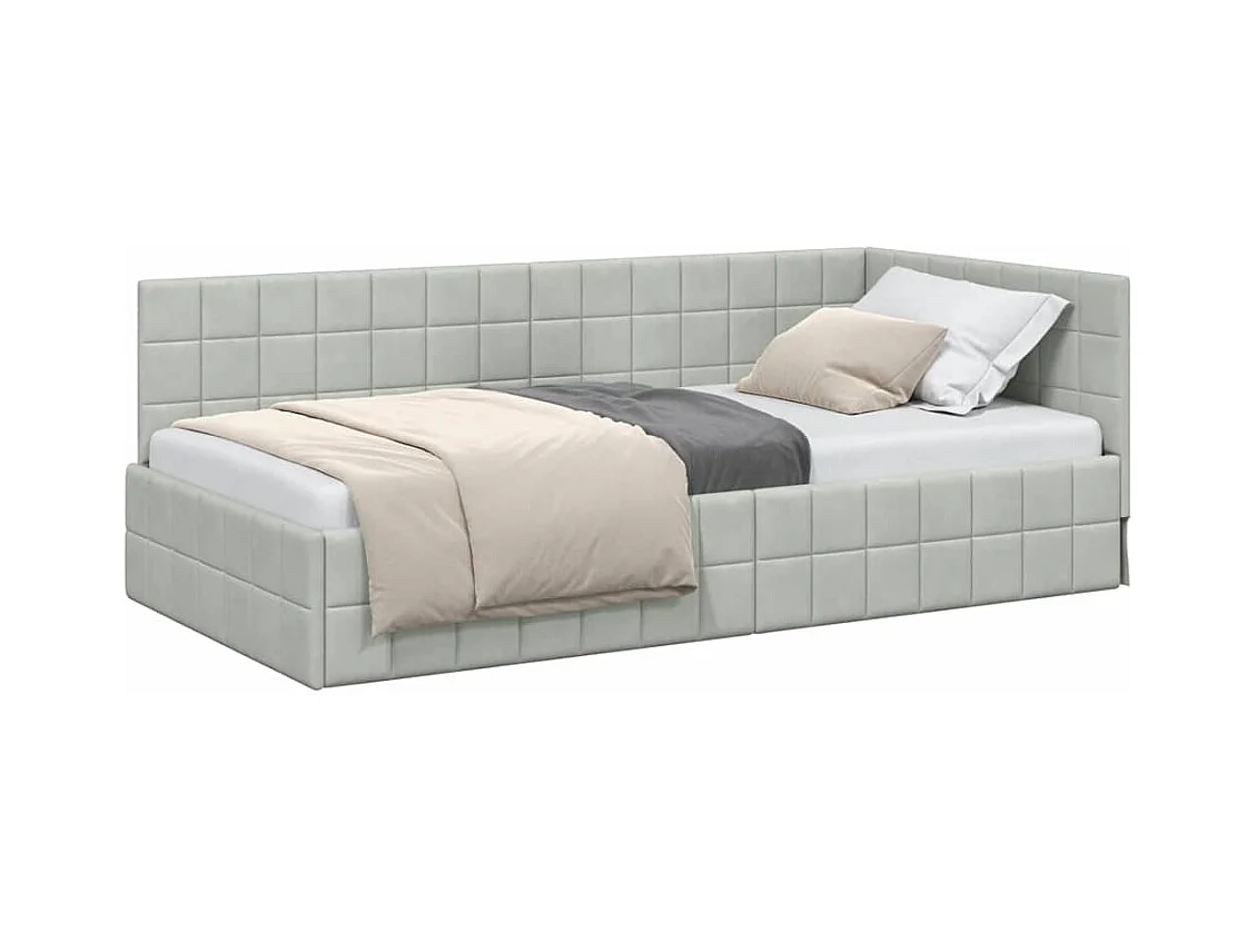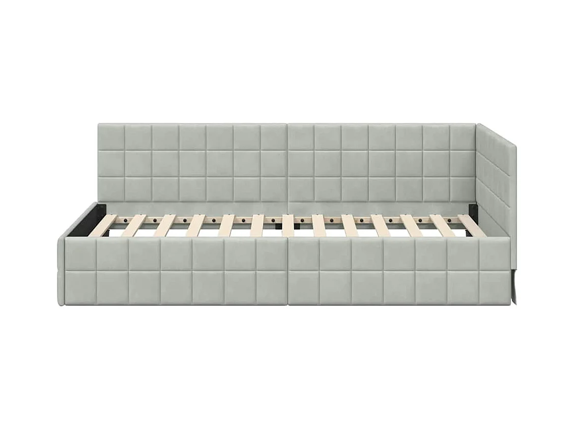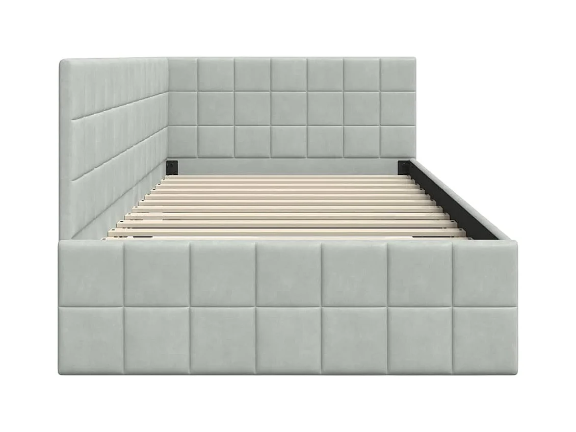 Struttura letto angolare grigio chiaro 90 x 190 cm velluto