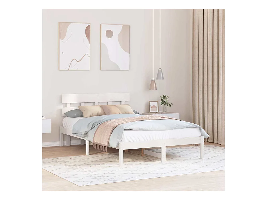 Struttura letto bianca 120 x 190 cm Legno massello di pino