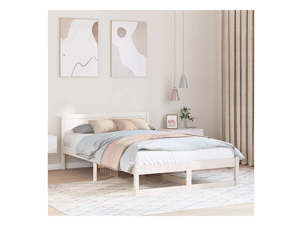 Struttura letto bianca 140 x 190 cm Legno massello di pino
